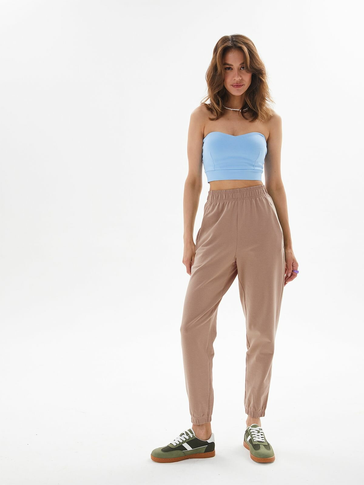 2019F2 Спортивные штаны джоггеры укороченные женские HIGH TEMP, Серо-бежевый, 50/52