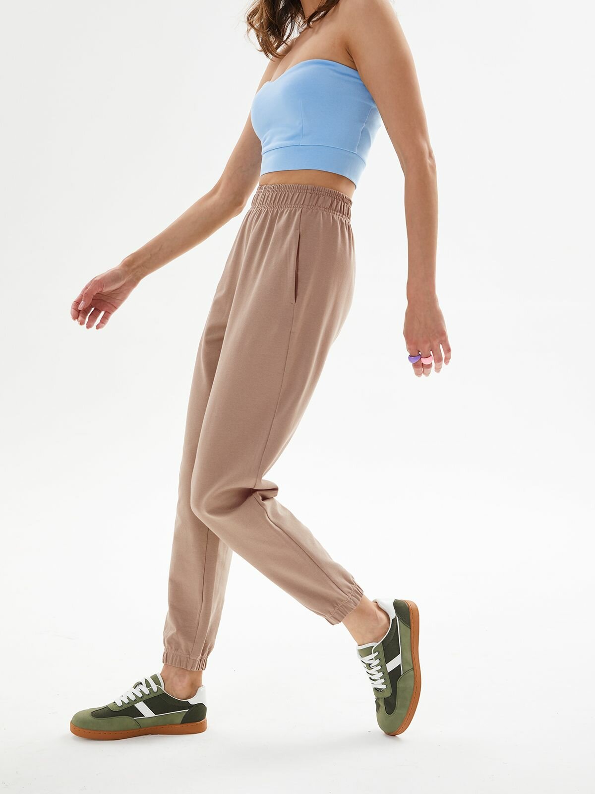 2019F2 Спортивные штаны джоггеры укороченные женские HIGH TEMP, Серо-бежевый, 38/40