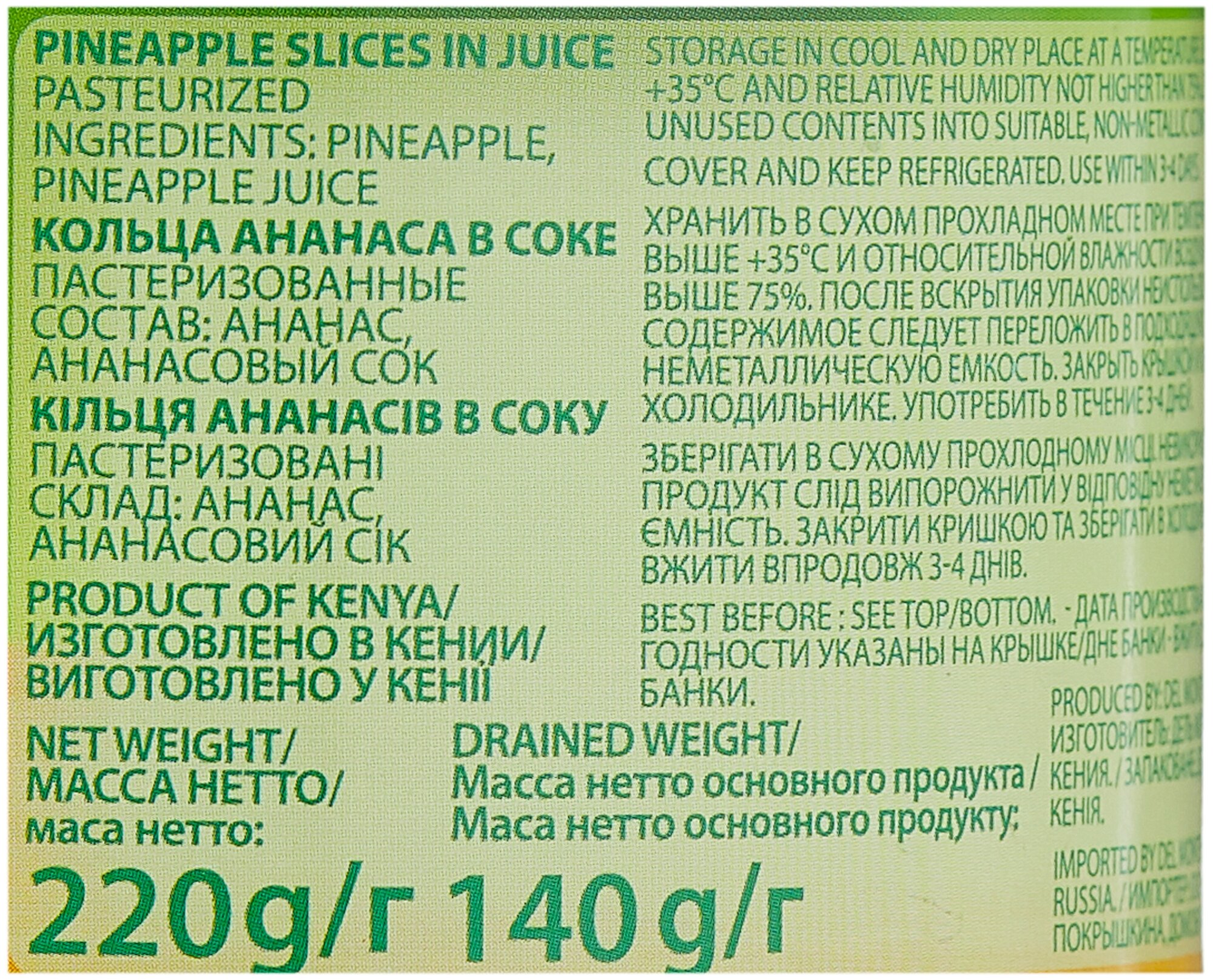 Кольца ананаса DEL MONTE в соке 220г интересное: