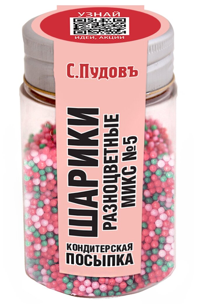 Посыпка шарики разноцветные микс №5 С.Пудовъ, 40 г интересное: