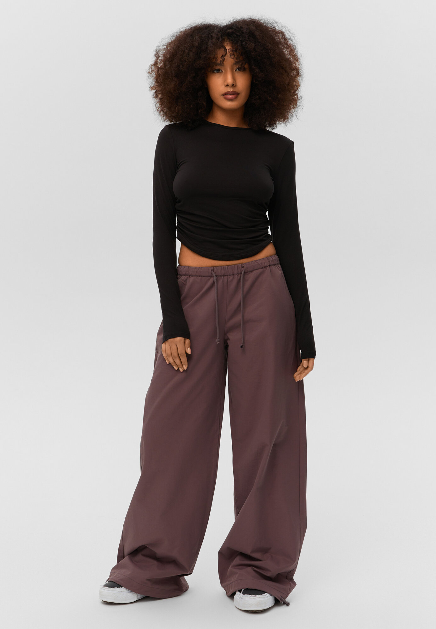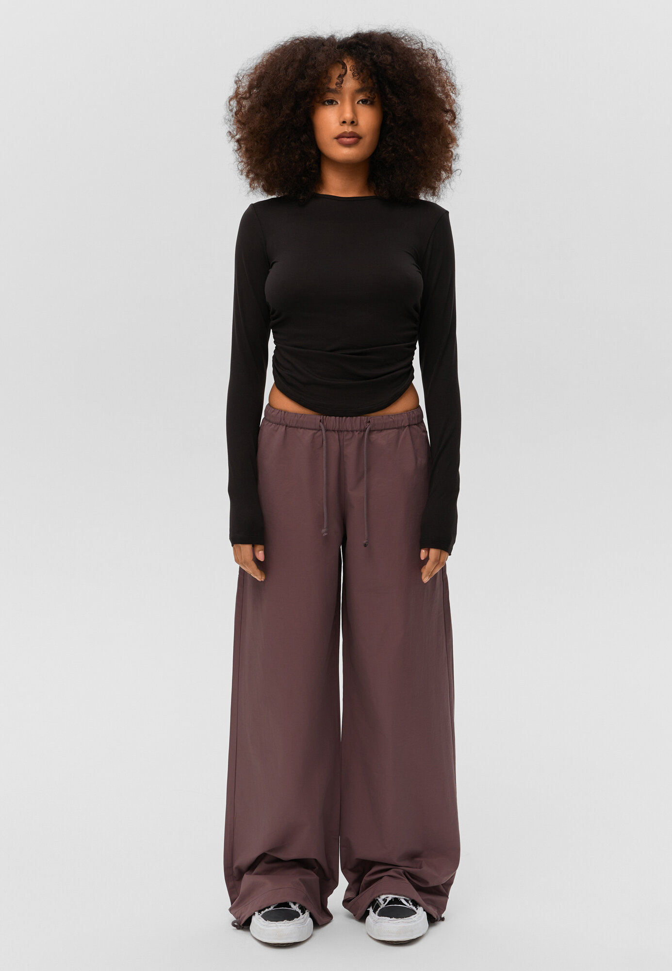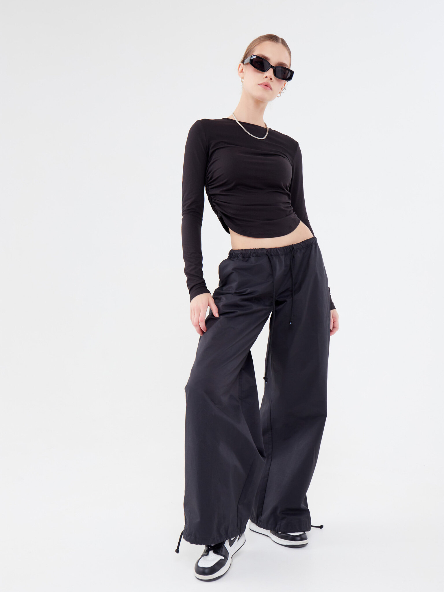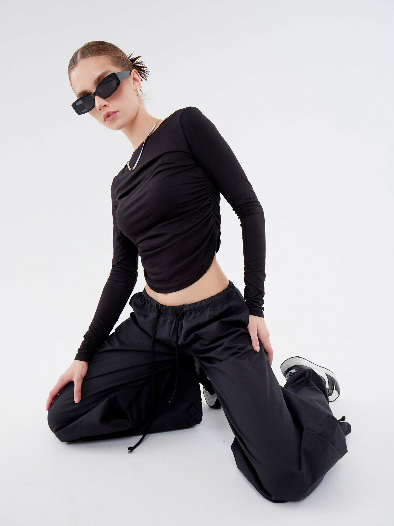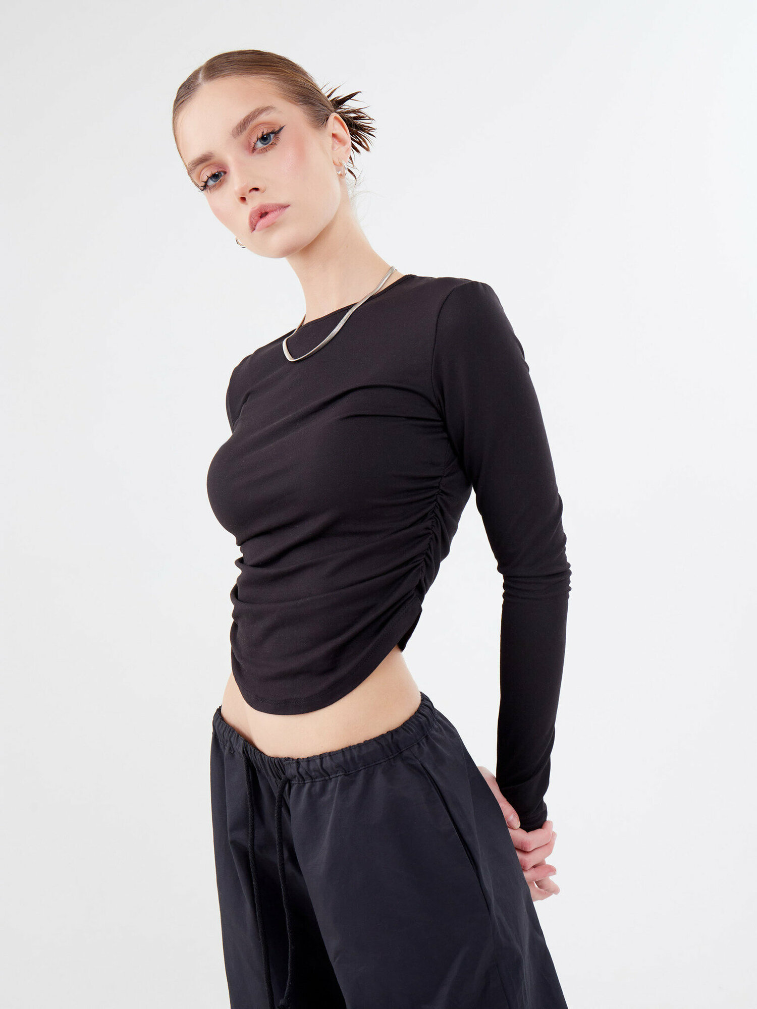 Топ Hide со сборками с длинным рукавом, цвет черный, размер M