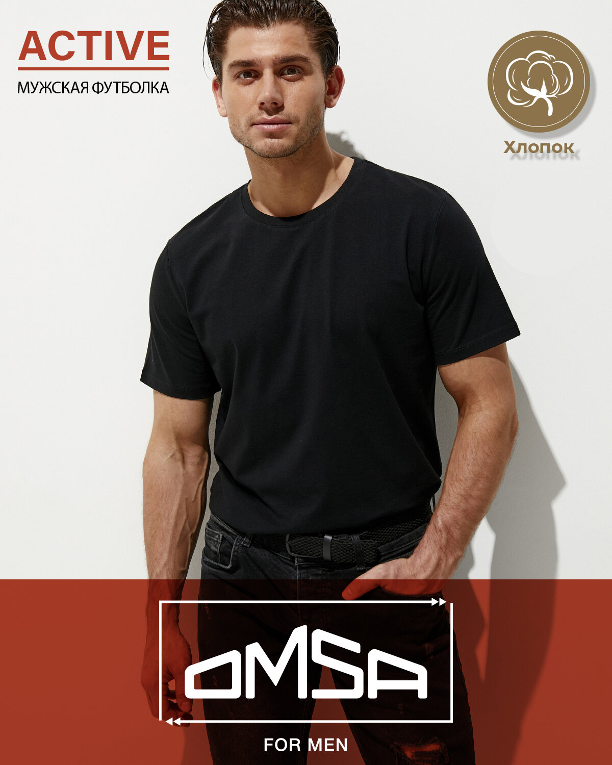 Футболка мужская Omsa OmT_U 1201 COTTON, хлопковая, спортивная, свободного кроя, цвет Nero размер 46/M