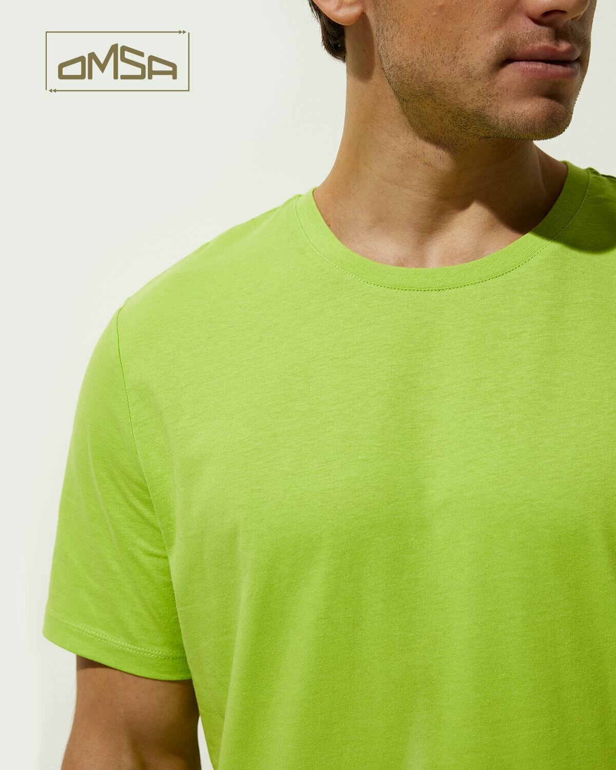 Футболка мужская Omsa OmT_U 1201 COTTON, хлопковая, спортивная, свободного кроя, цвет Lime размер 46/M