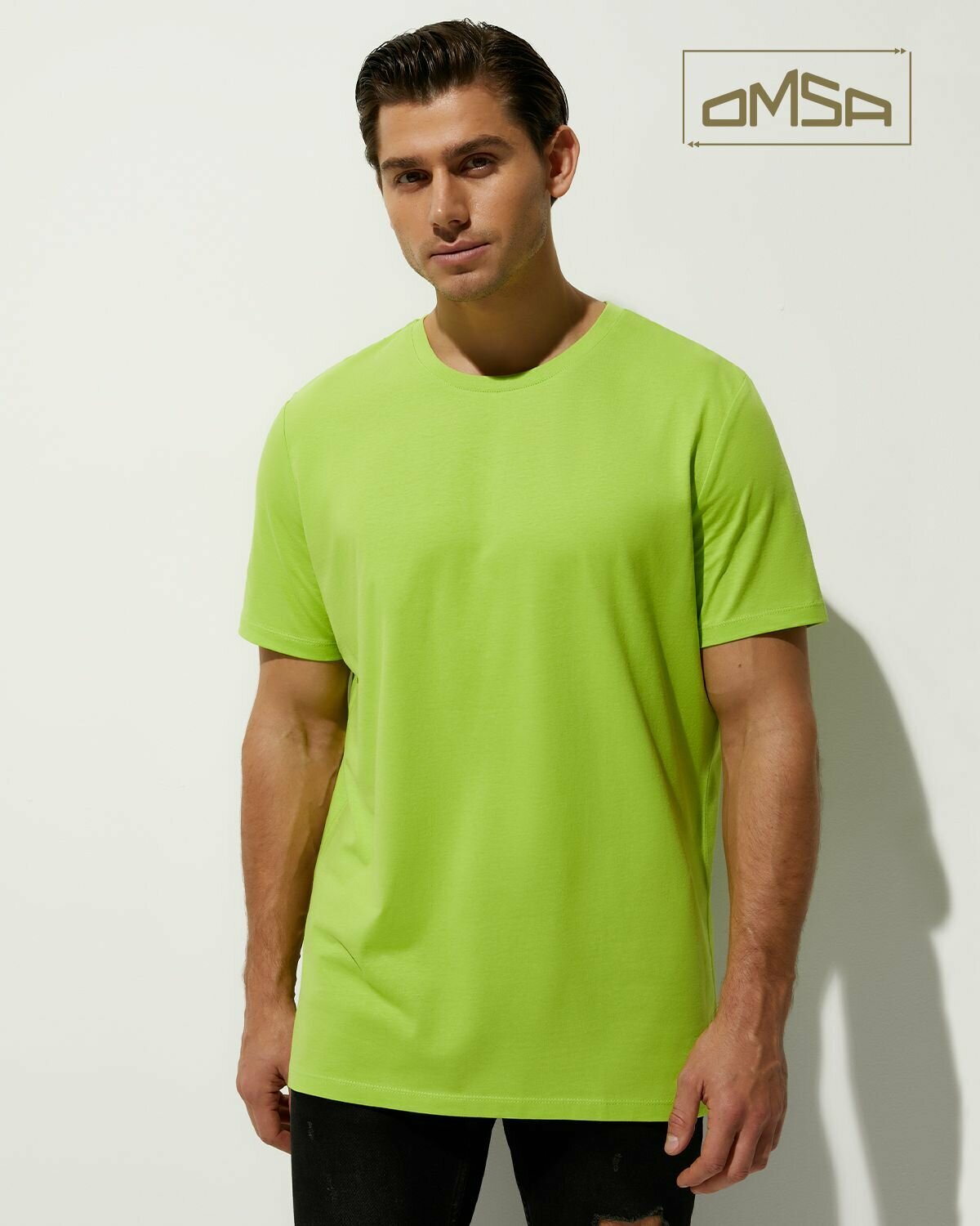 Футболка мужская Omsa OmT_U 1201 COTTON, хлопковая, спортивная, свободного кроя, цвет Lime размер 46/M