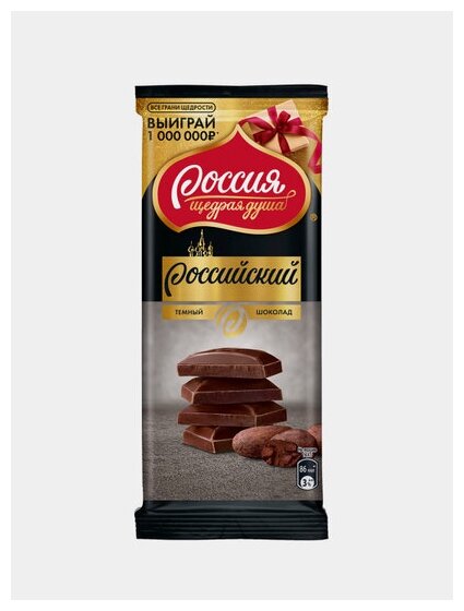 «Россия» - щедрая душа!®. Российский. Темный шоколад 82г. интересное:
