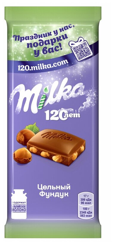 Шоколад Milka молочный с цельным фундуком, 85 г