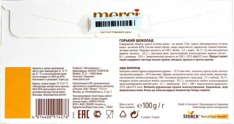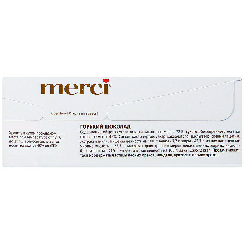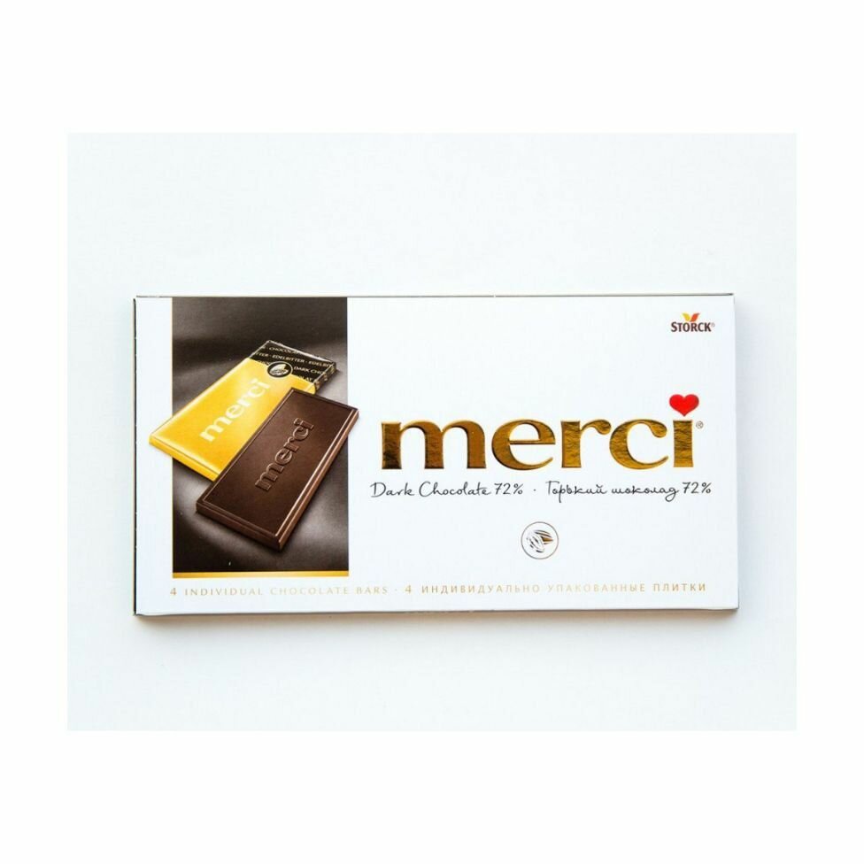 Merci, шоколад горький 72% какао, шоколадные плитки, 100г. Мерси, произведено в Германии