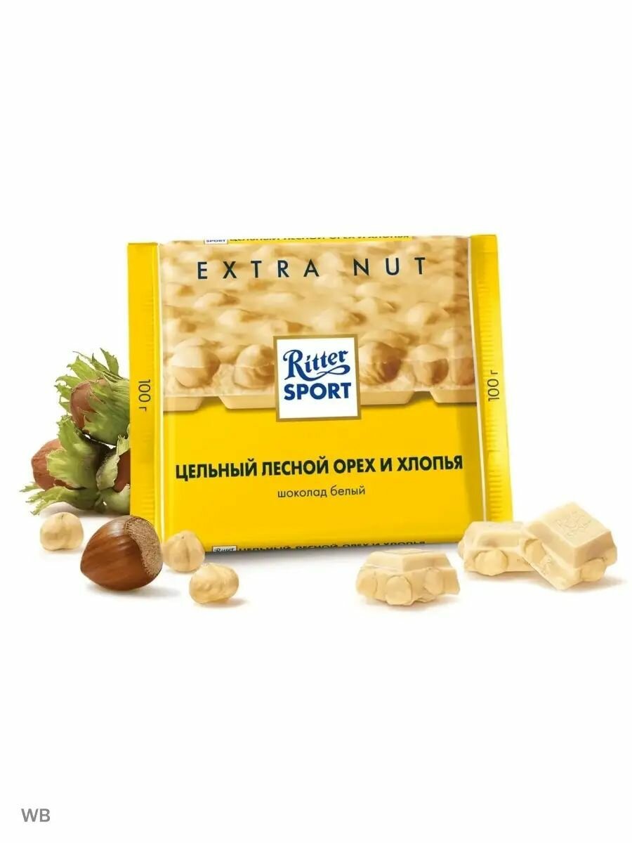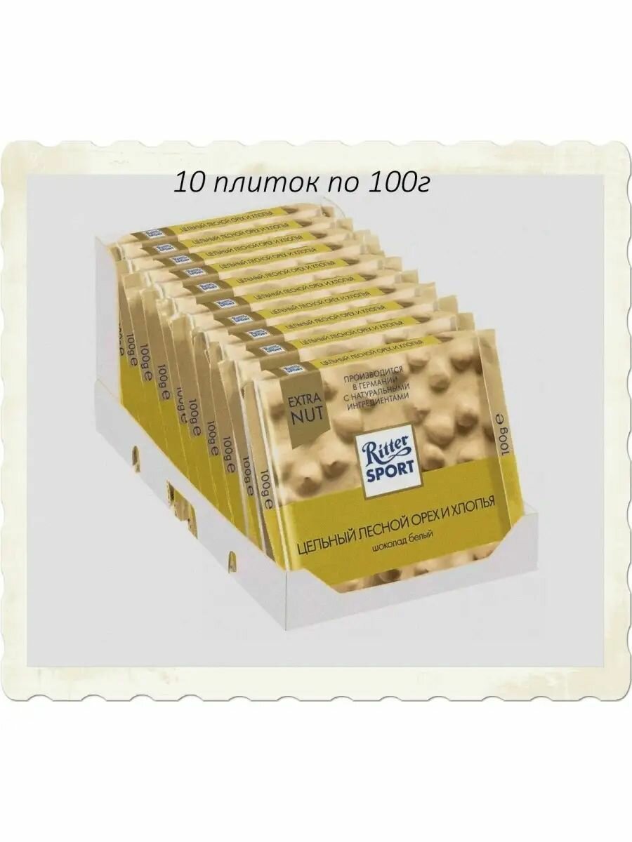 Шоколад Ritter Sport Extra Nut белый цельный лесной орех и хлопья, 100 г, 10 шт.