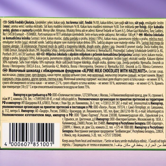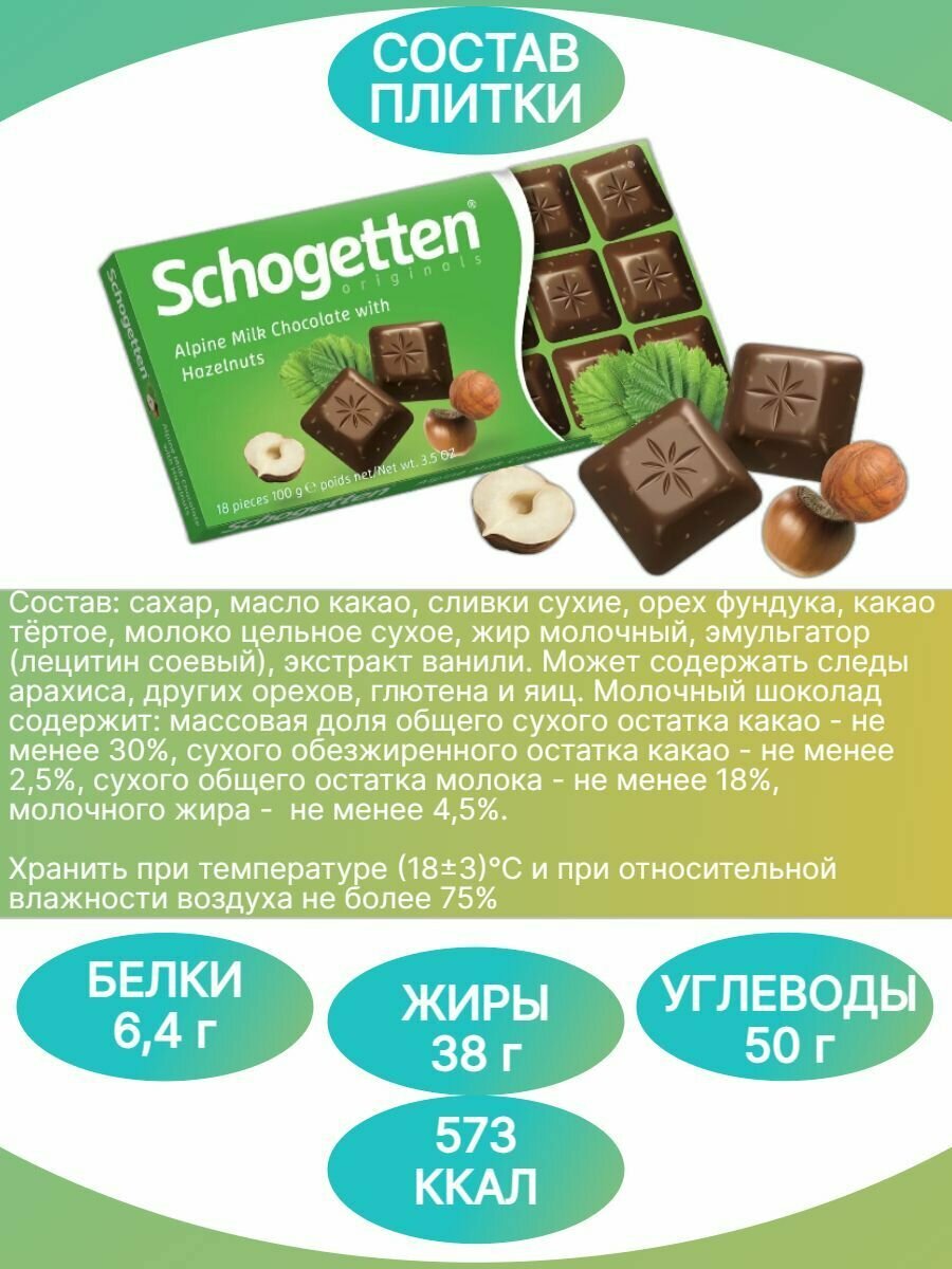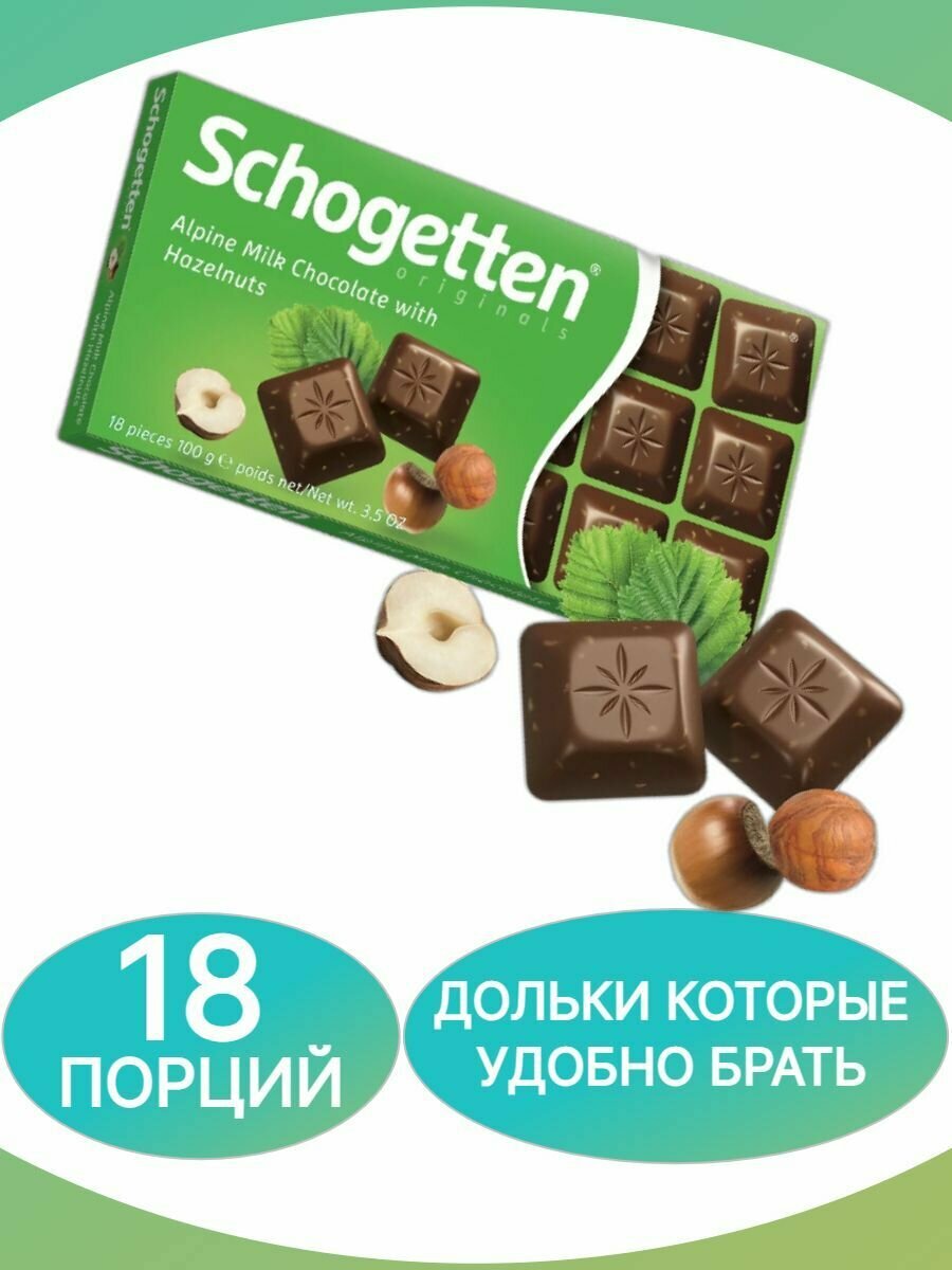 СохранитьШоколад Schogetten Alpine Milk Chocolate with Hazelnuts альпийский молочный с фундуком порционный, 100 г интересное: