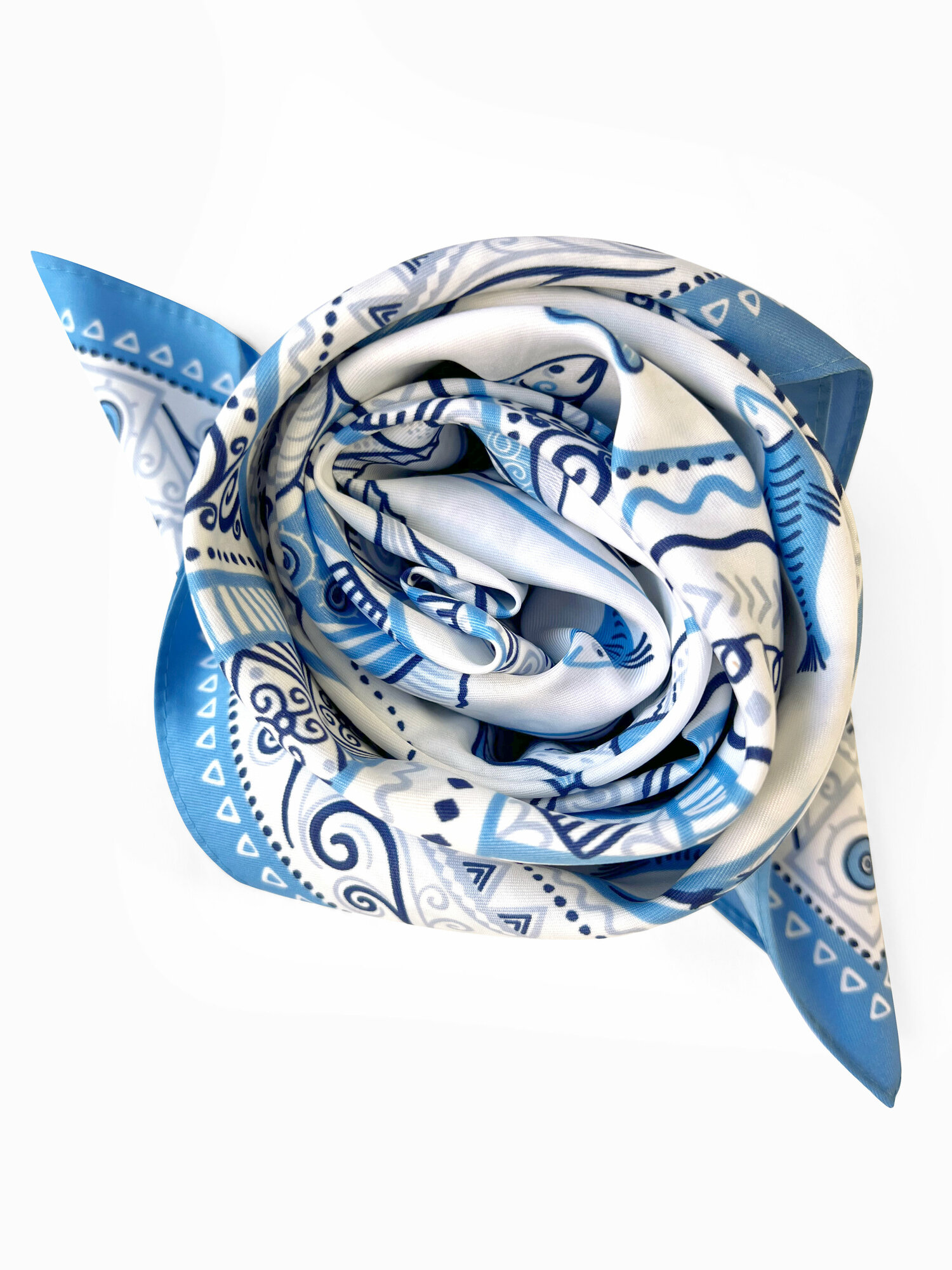Платок Русские в моде by Nina Ruchkina Север для девочек и женщин,90х90 см, синий
