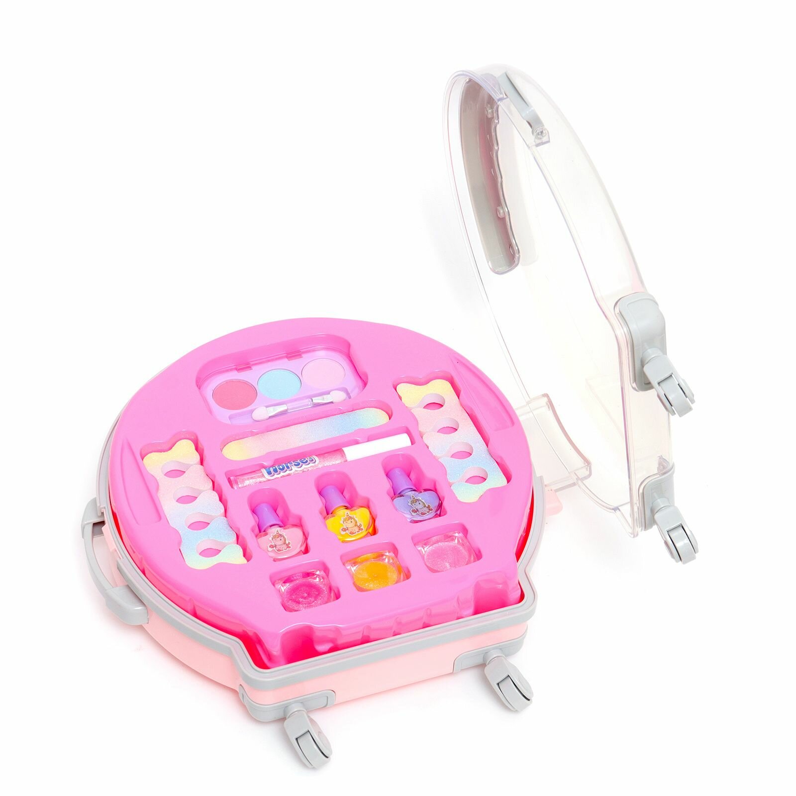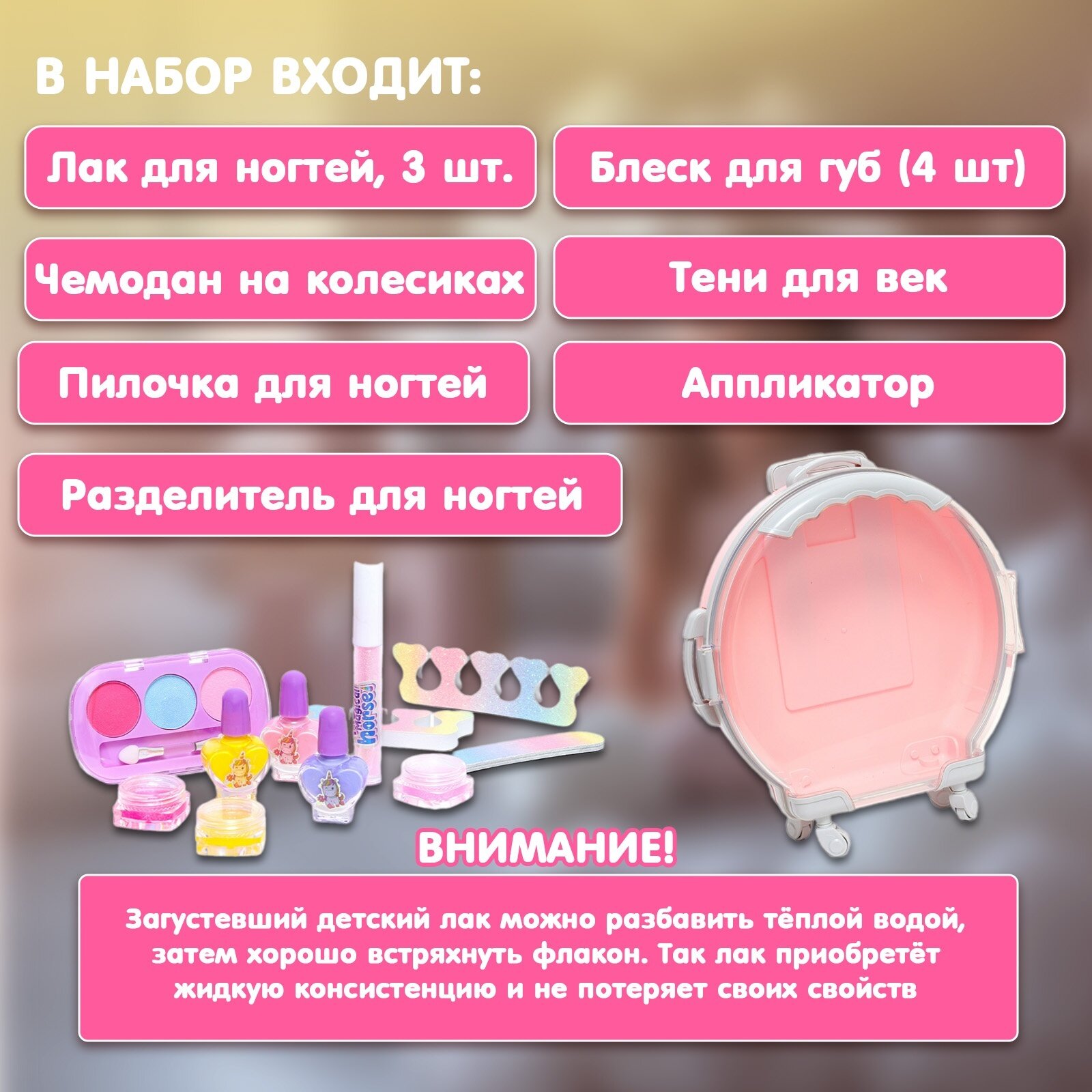 Купить Набор косметики для девочки "Чемодан на колёсах", розовый, с накладными ногтями