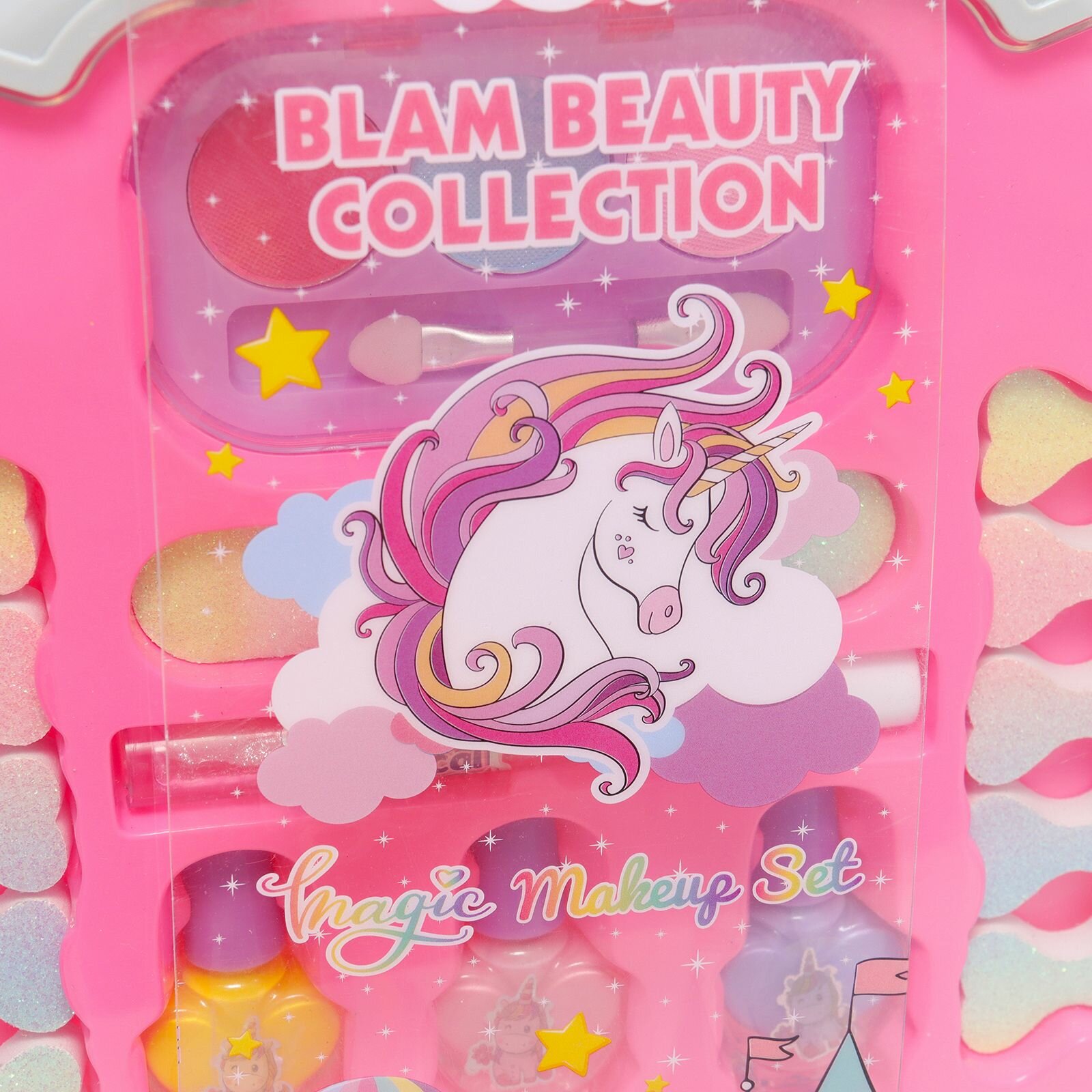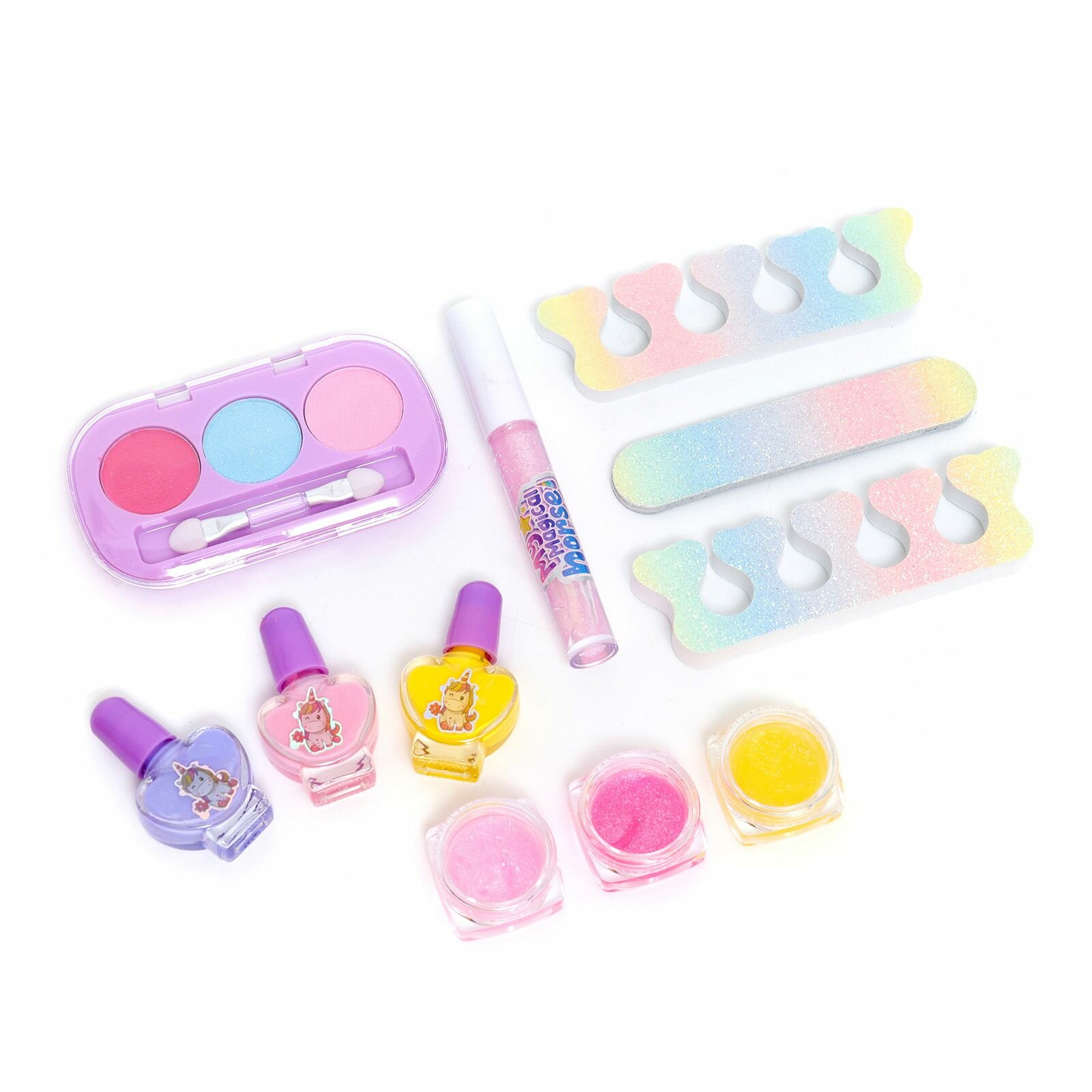 | Подробная комплектация | В наборе: чемодан на колесиках, блеск для губ 4 шт., лак для ногтей 3 шт., тени для век, аппликатор, пилочка для ногтей, разделитель для пальцев 2 шт. |