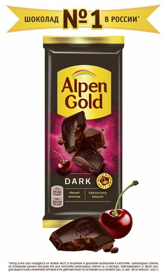 ALPEN GOLD шоколад темный пикантная вишня 80г Набор по 5шт интересное: