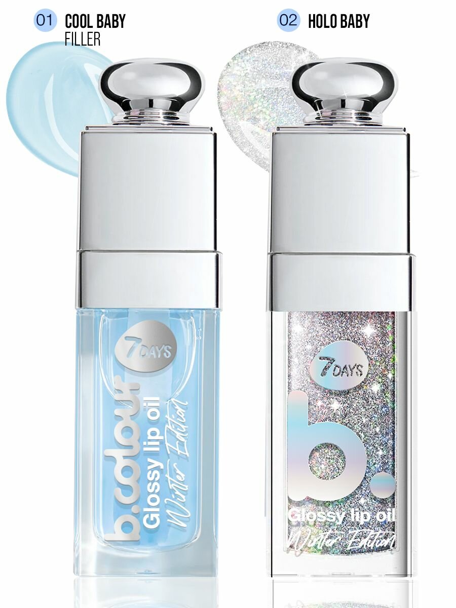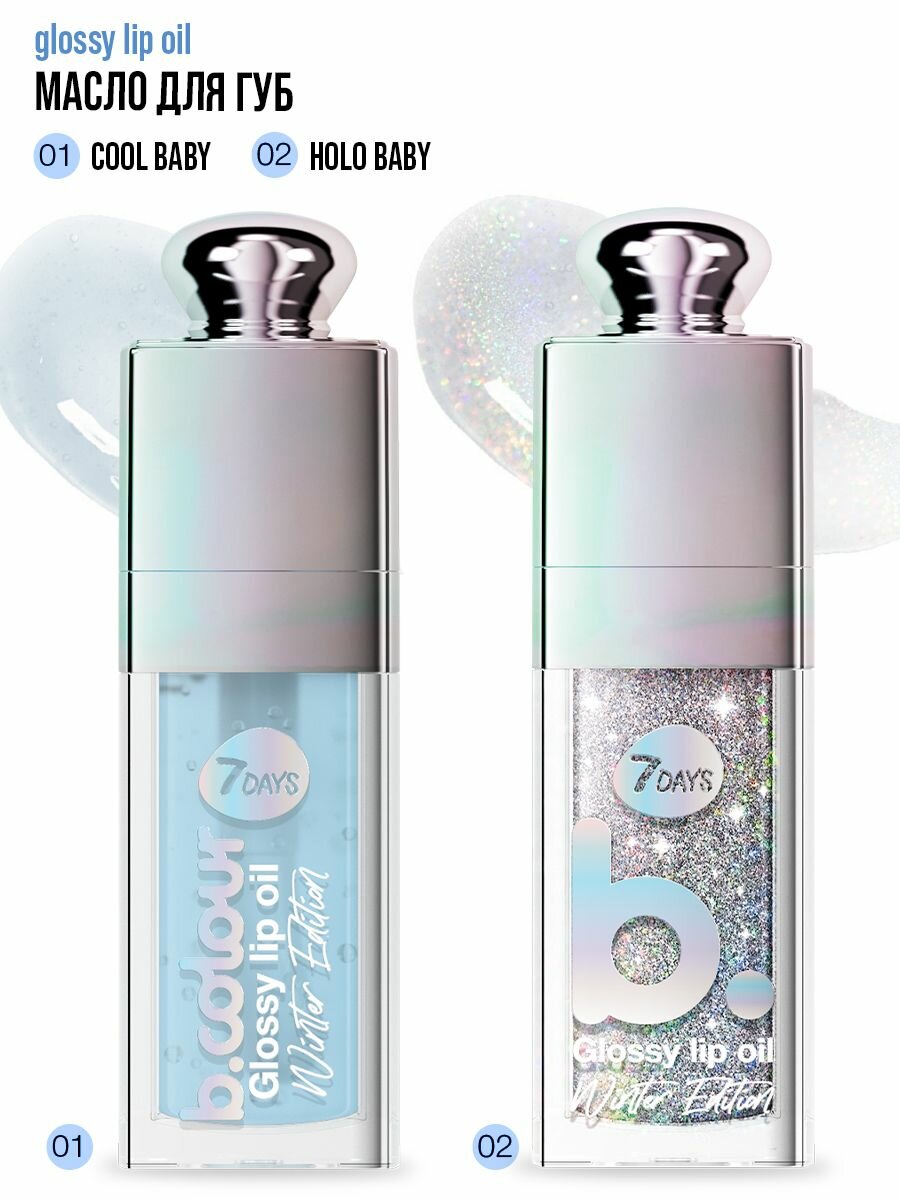 7DAYS Блеск для губ прозрачный с блестками, масло охлаждающее, увлажняющее B.COLOUR 02 HOLO BABY