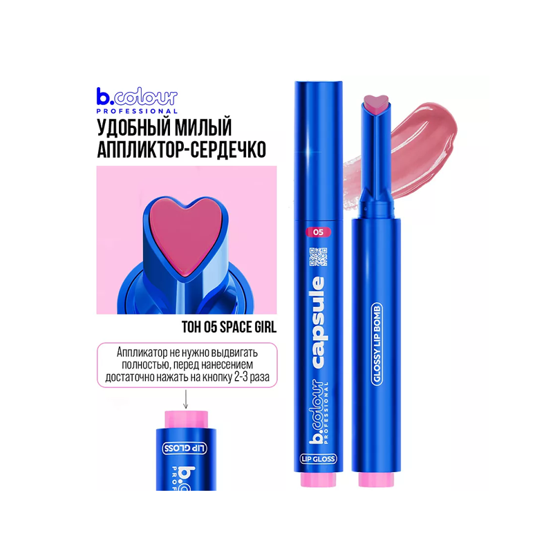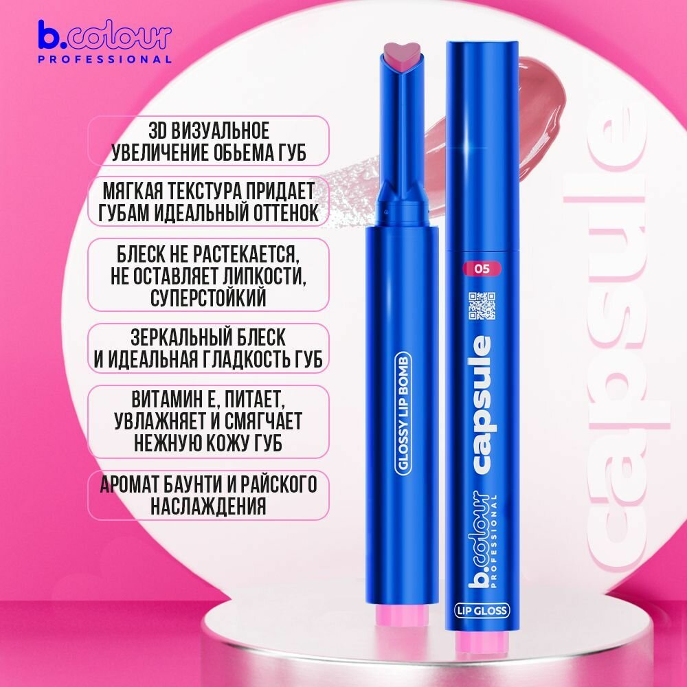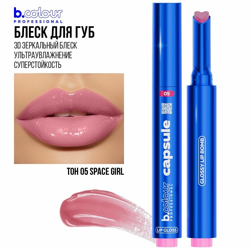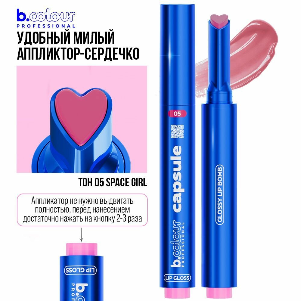 B.COLOUR PROFESSIONAL Блеск для губ розовый прозрачный, увлажняющий, увеличивающий объем CAPSULE 05 SPACE GIRL