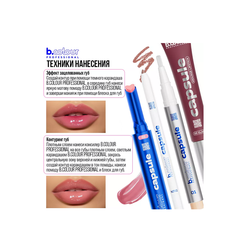 B.COLOUR PROFESSIONAL Блеск для губ розовый, увлажняющий, увеличивающий объем CAPSULE 03 INNOVATOR