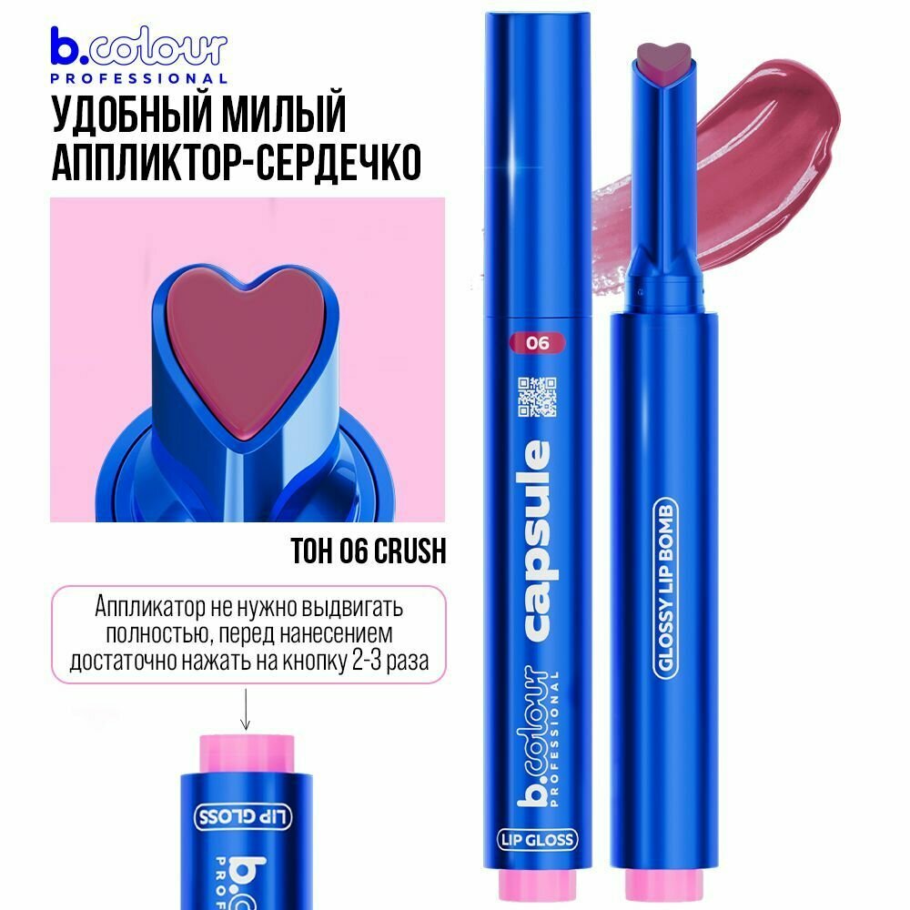 B.COLOUR PROFESSIONAL Блеск для губ розовый прозрачный увлажняющий увеличивающий объем CAPSULE 06 CRUSH