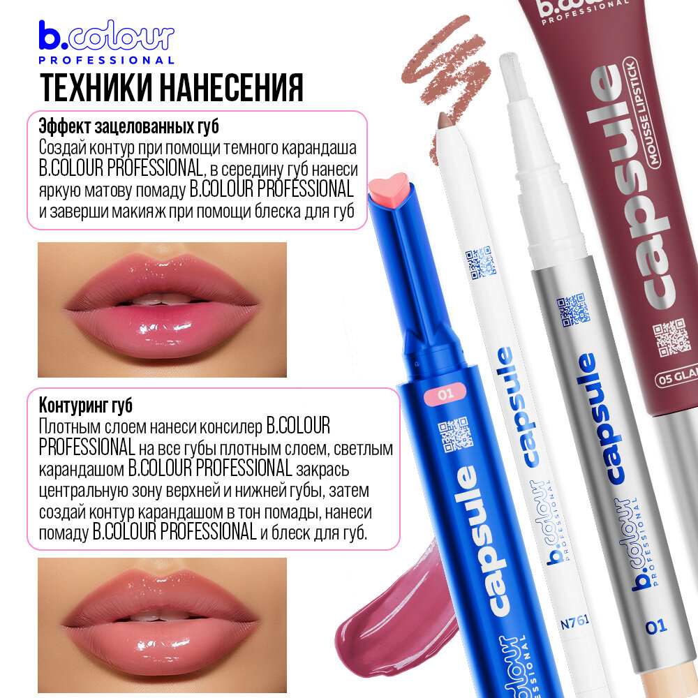 B.COLOUR PROFESSIONAL Блеск для губ розовый, увлажняющий, увеличивающий объем CAPSULE 02 DREAMER