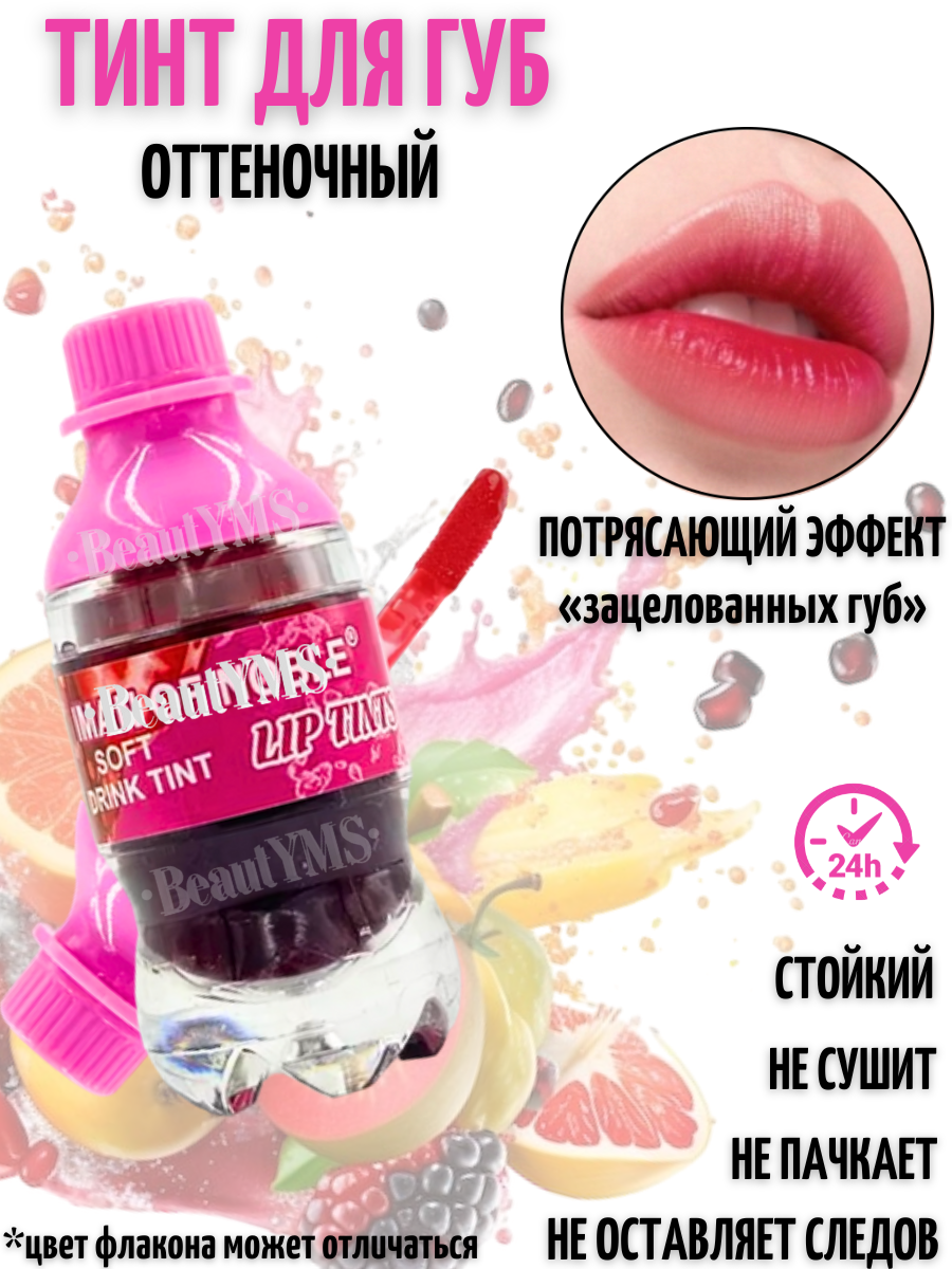 | Дополнительная информация | тинт не рекомендуется наносить на сухие и потрескавшиеся губы. Предварительно следует нанести на кубы и равномерно распределить легкими массажными движениями немного скраба для губ. |