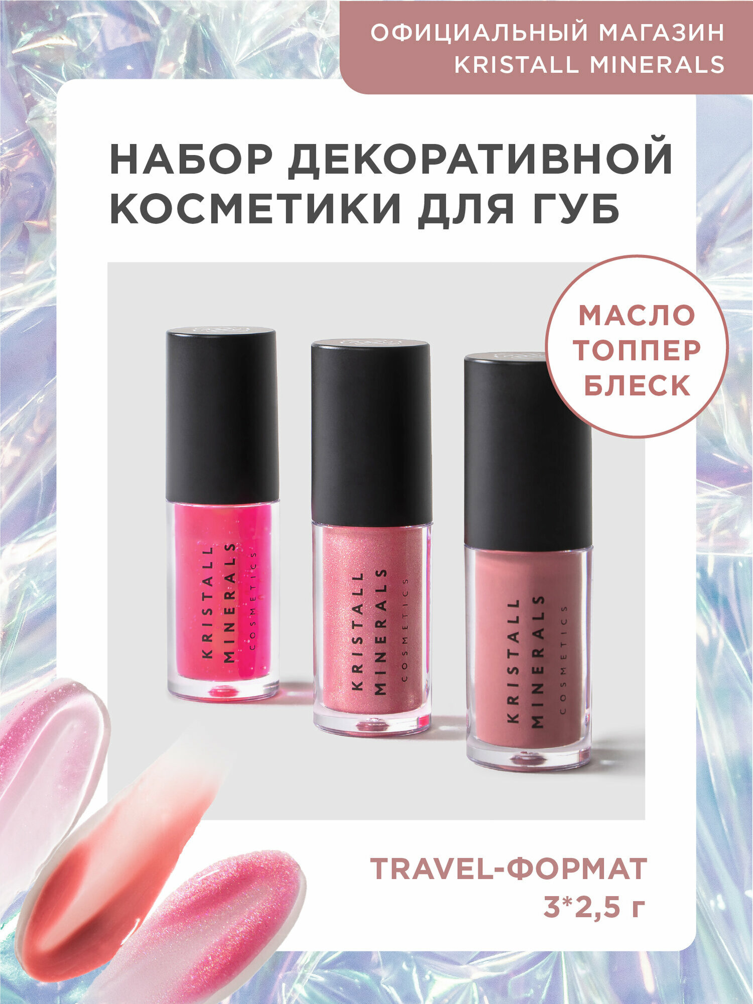 Купить Набор миниатюр блесков для губ Beauty Present блеск/масло/топпер, Kristall Minerals cosmetics