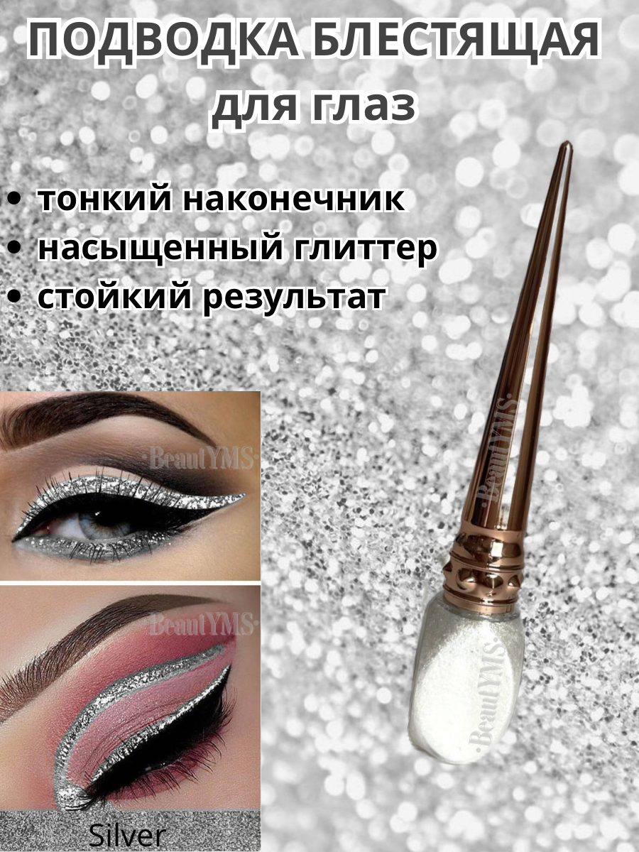 Купить Подводка для глаз блестящая цветная глиттер с блестками Серебристая