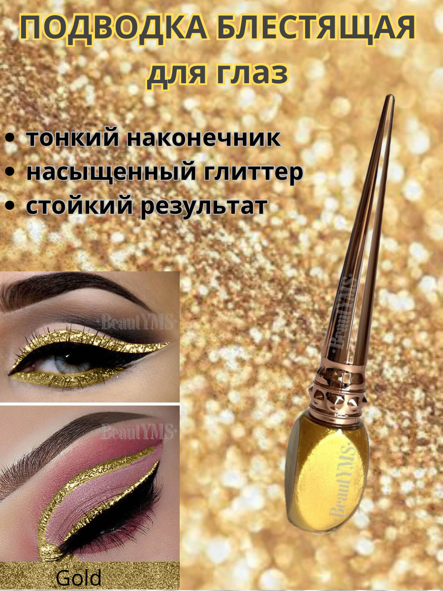 Купить Подводка для глаз блестящая цветная глиттер с блестками Золотистая
