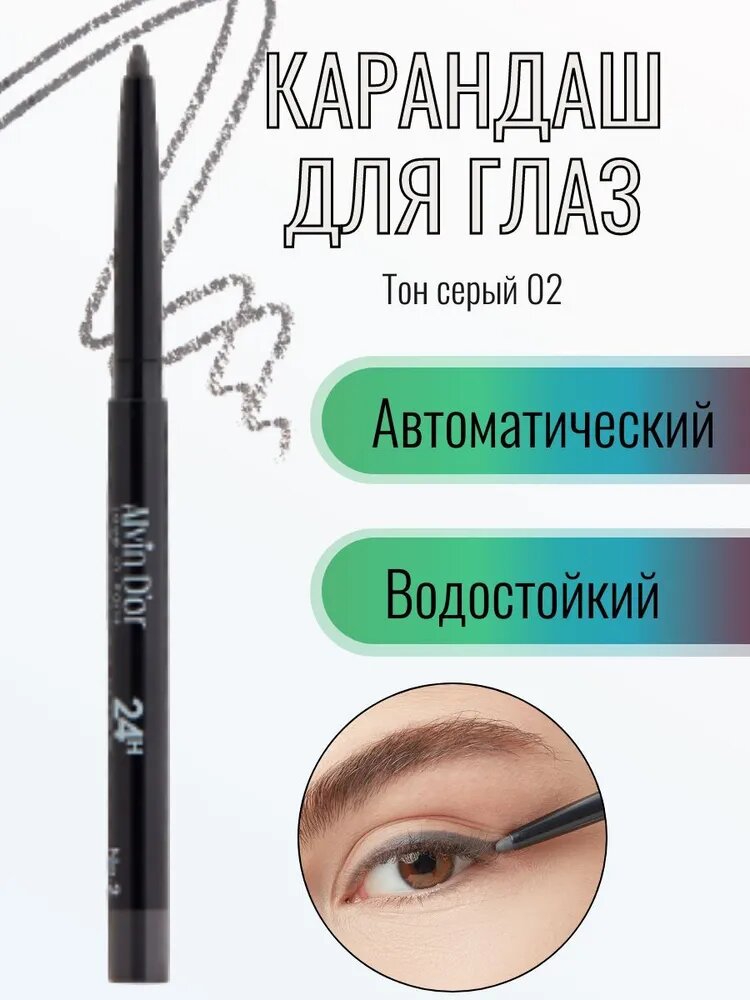 Карандаш для глаз Alvin D'or Lastingliner 24h водостойкий, тон №02 серый
