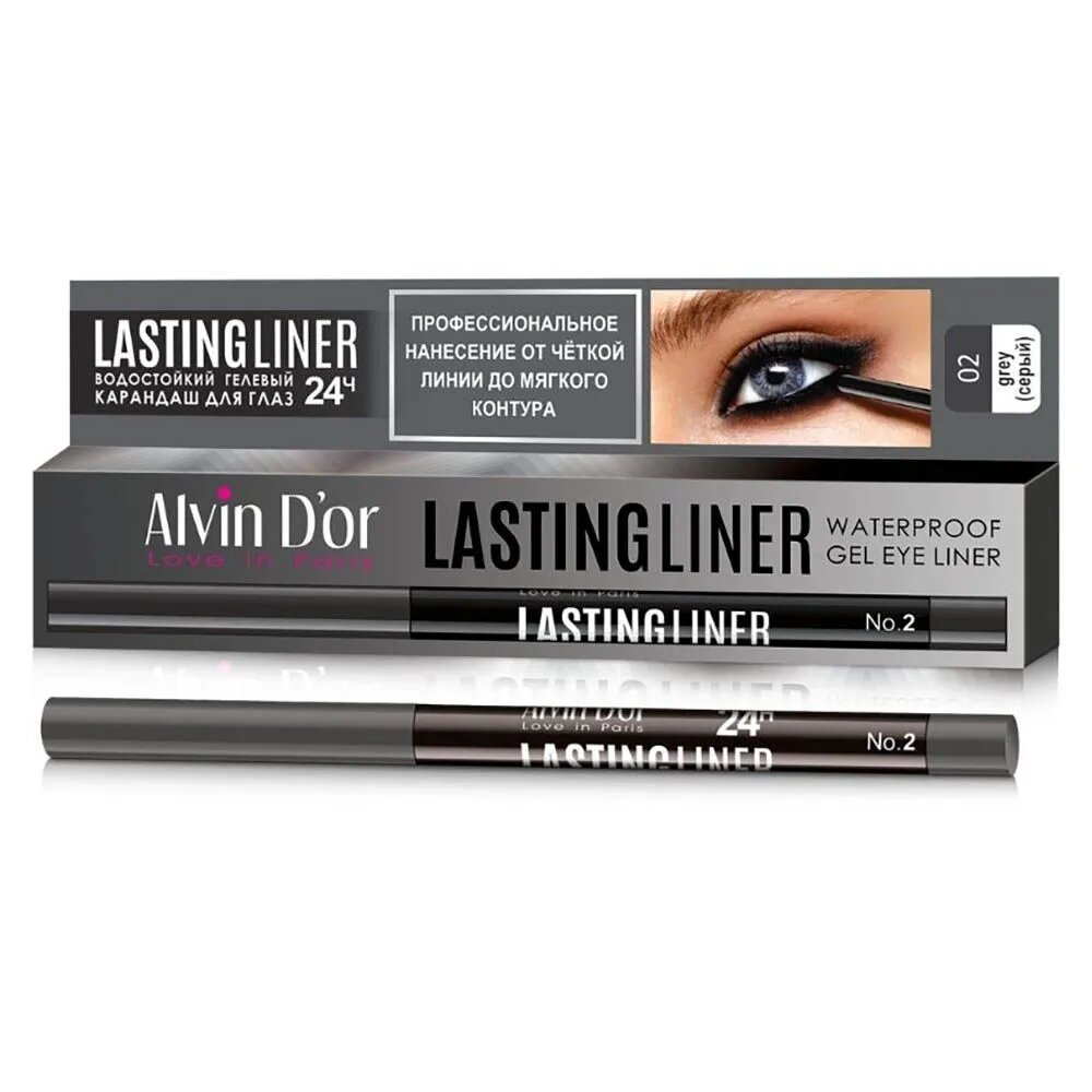Купить Alvin D'or карандаш для глаз гелевый водостойкий Lastingliner P-14, оттенок 02 серый