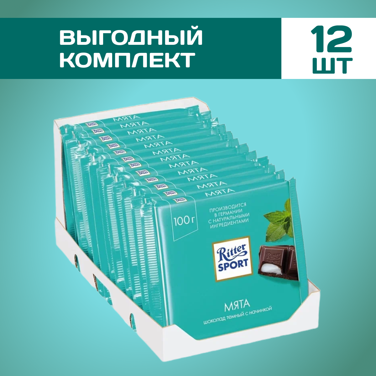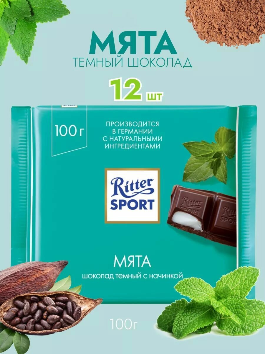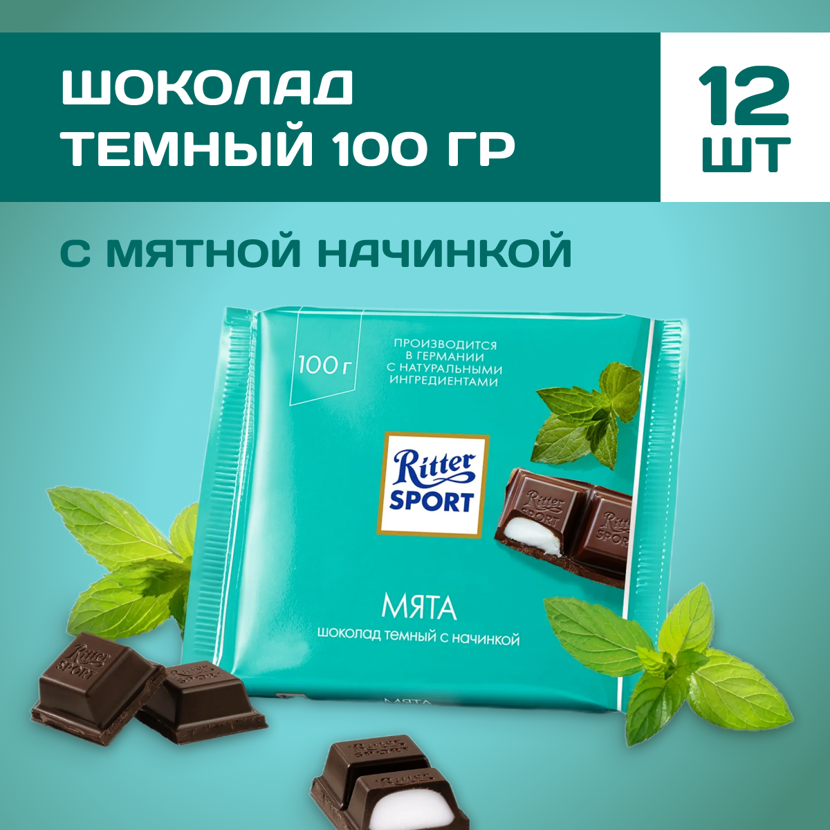 Купить Ritter Sport Риттер шоколад темный с начинкой Мята, 12 шт по 100 г