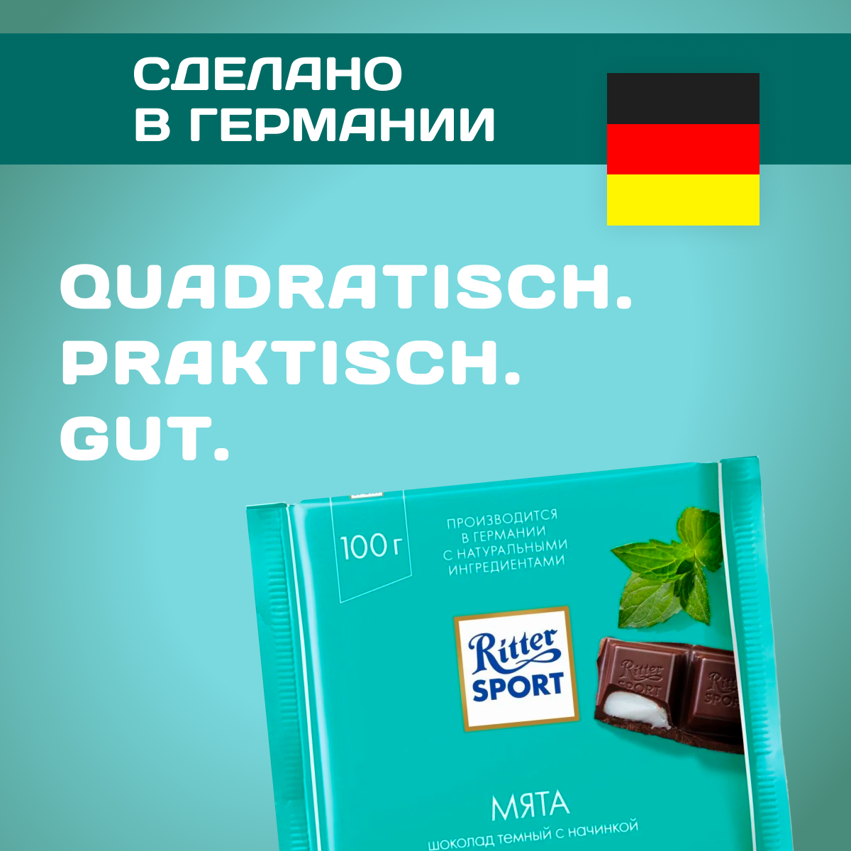 Шоколад Ritter Sport Мята темный с мятной начинкой, 100 г х 12 штук