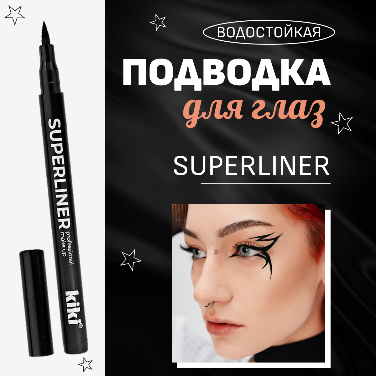 Подводка-фломастер для глаз kiki SUPERLINER, тонкий аппликатор, четкий контур, стойкая, угольно-черная