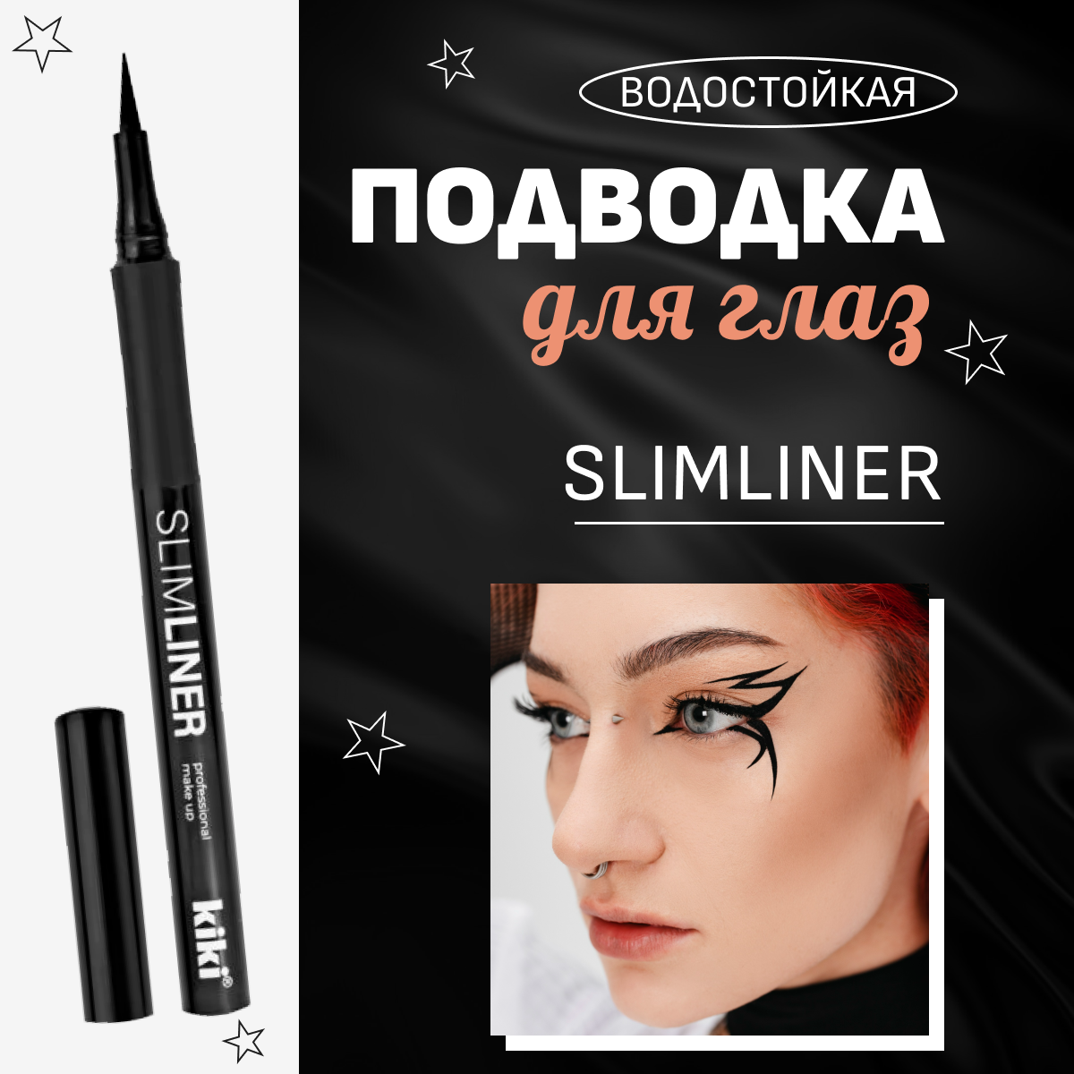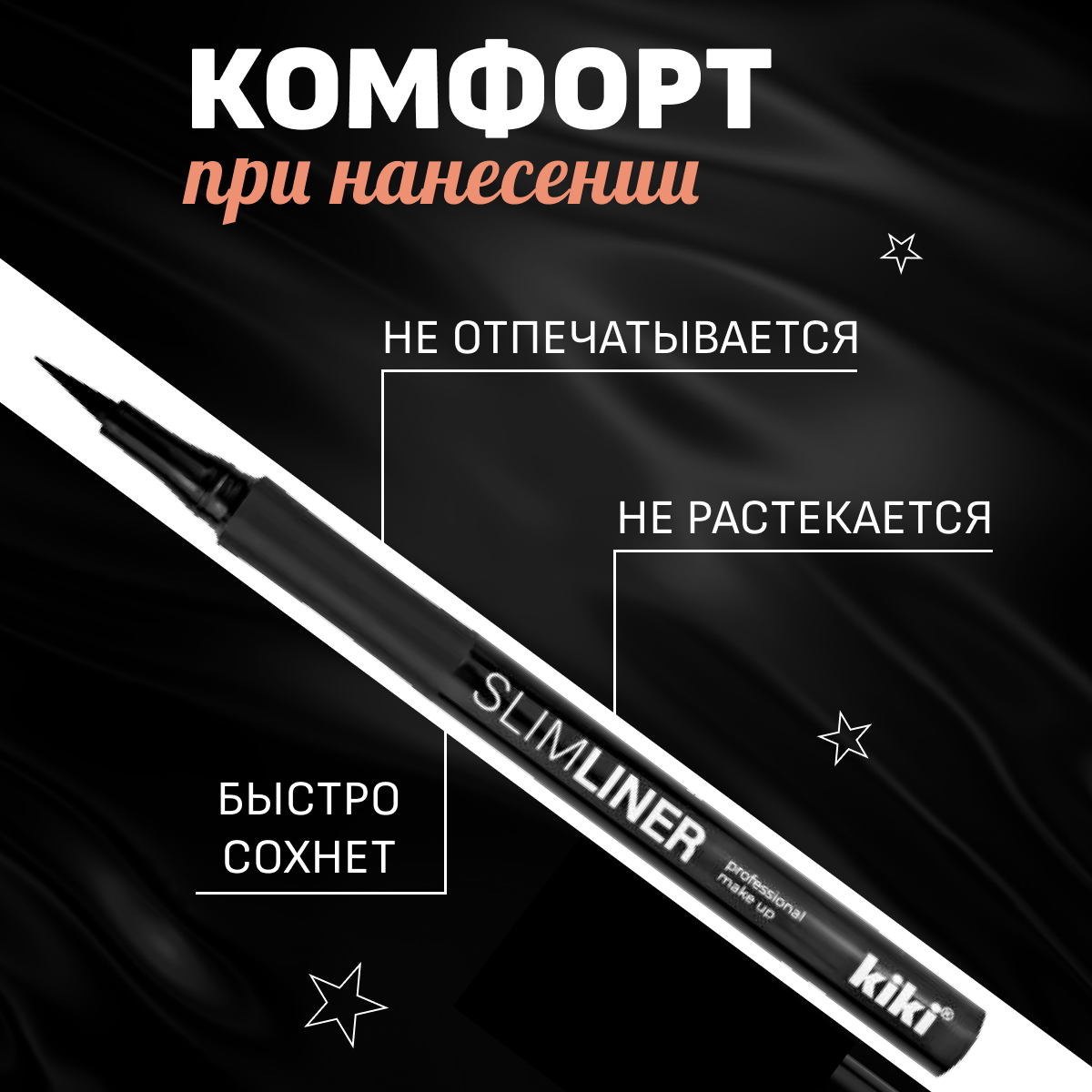 Подводка-фломастер для глаз kiki SUPERLINER, тонкий аппликатор, четкий контур, стойкая, угольно-черная