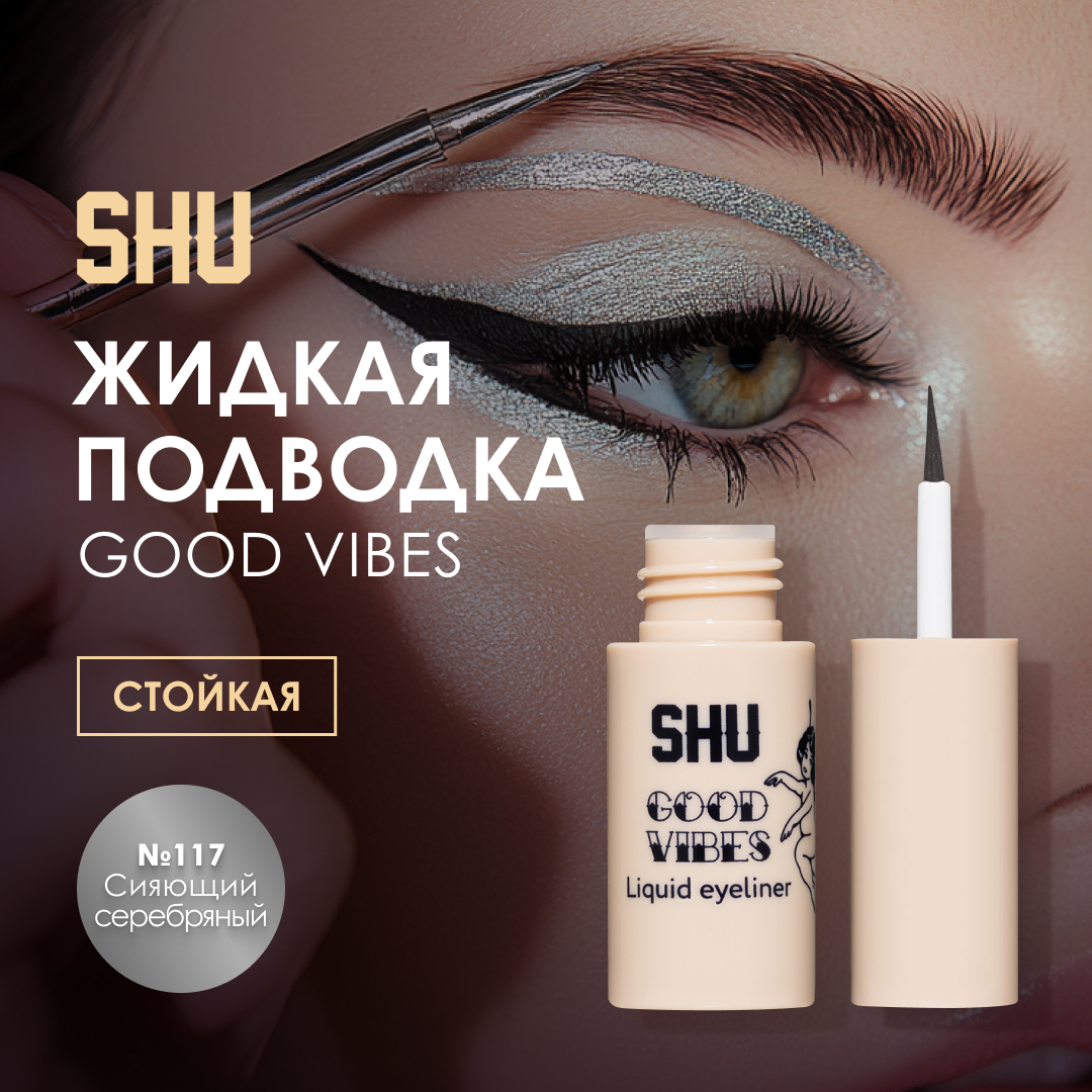 Купить SHU Подводка для глаз жидкая стойкая GOOD VIBES №117 сияющий серебряный