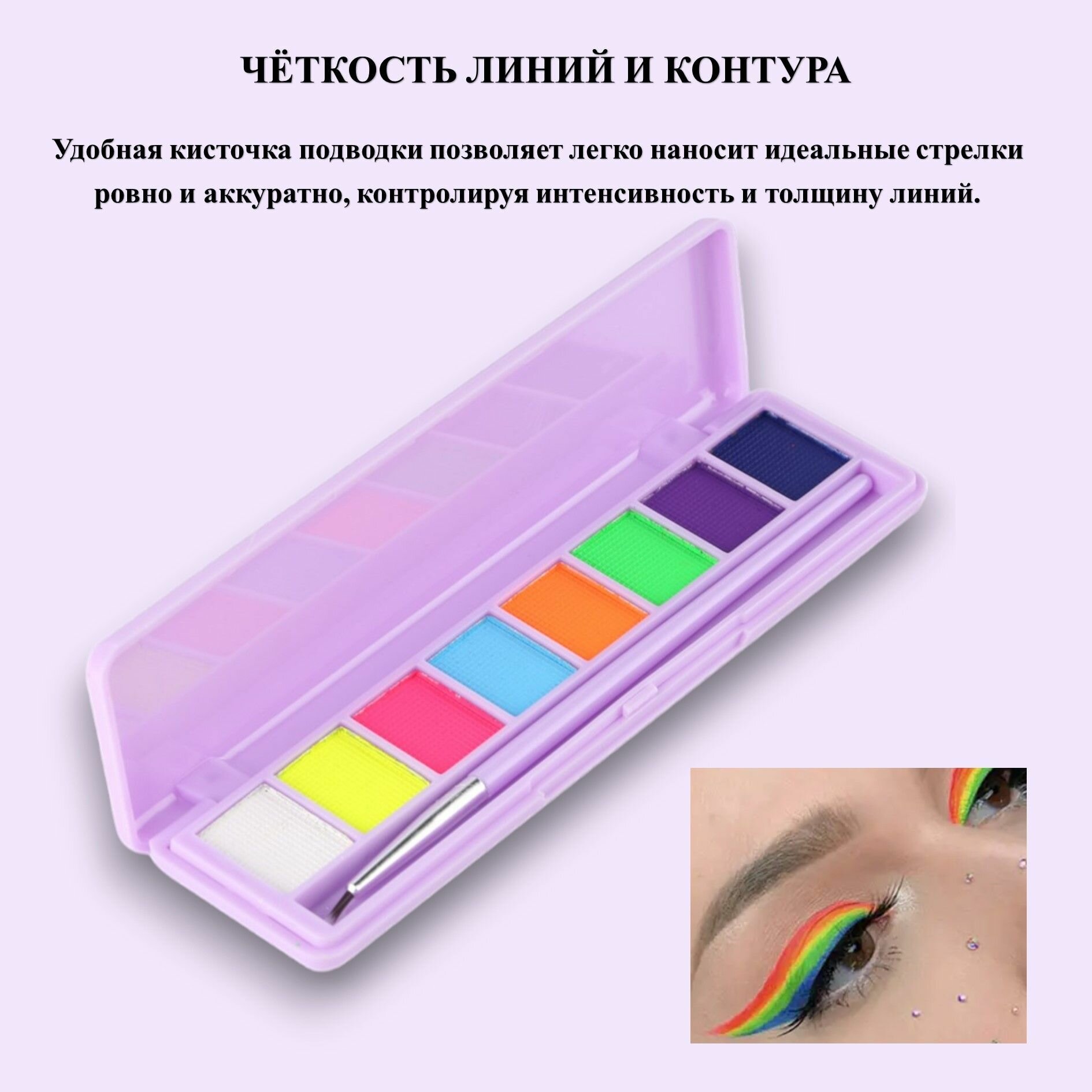 Подводки для глаз цветные неоновые набор палетка интересное: