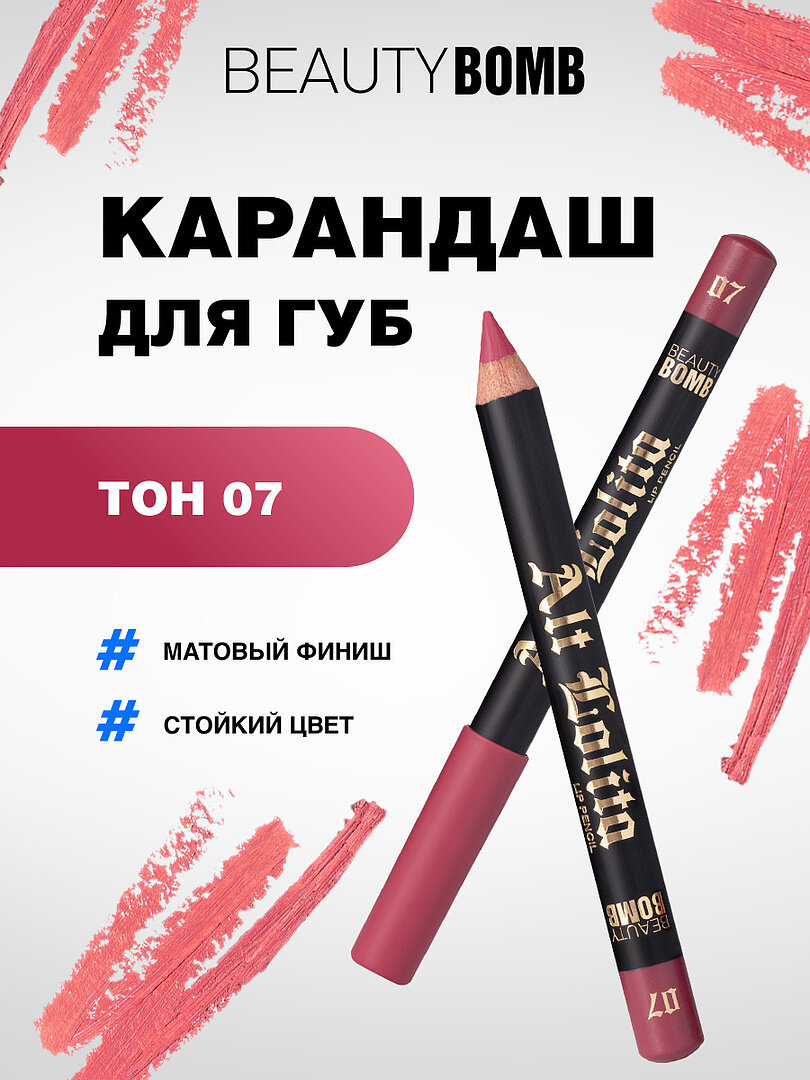 Карандаш для губ Beauty Bomb устойчивый Lip Pencil Alt Lolita, тон 07 интересное: