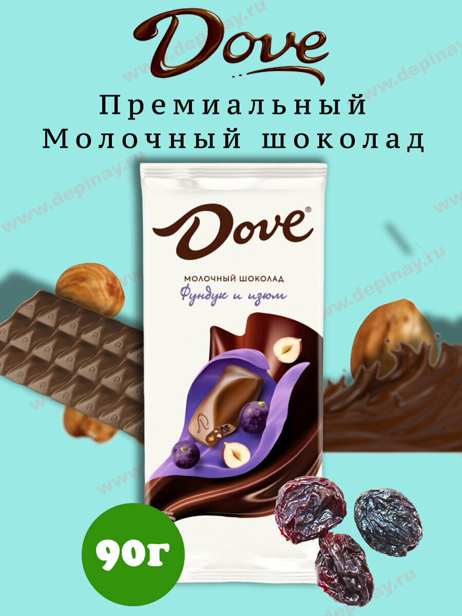 Шоколад Dove молочный, фундук/изюм 90г интересное: