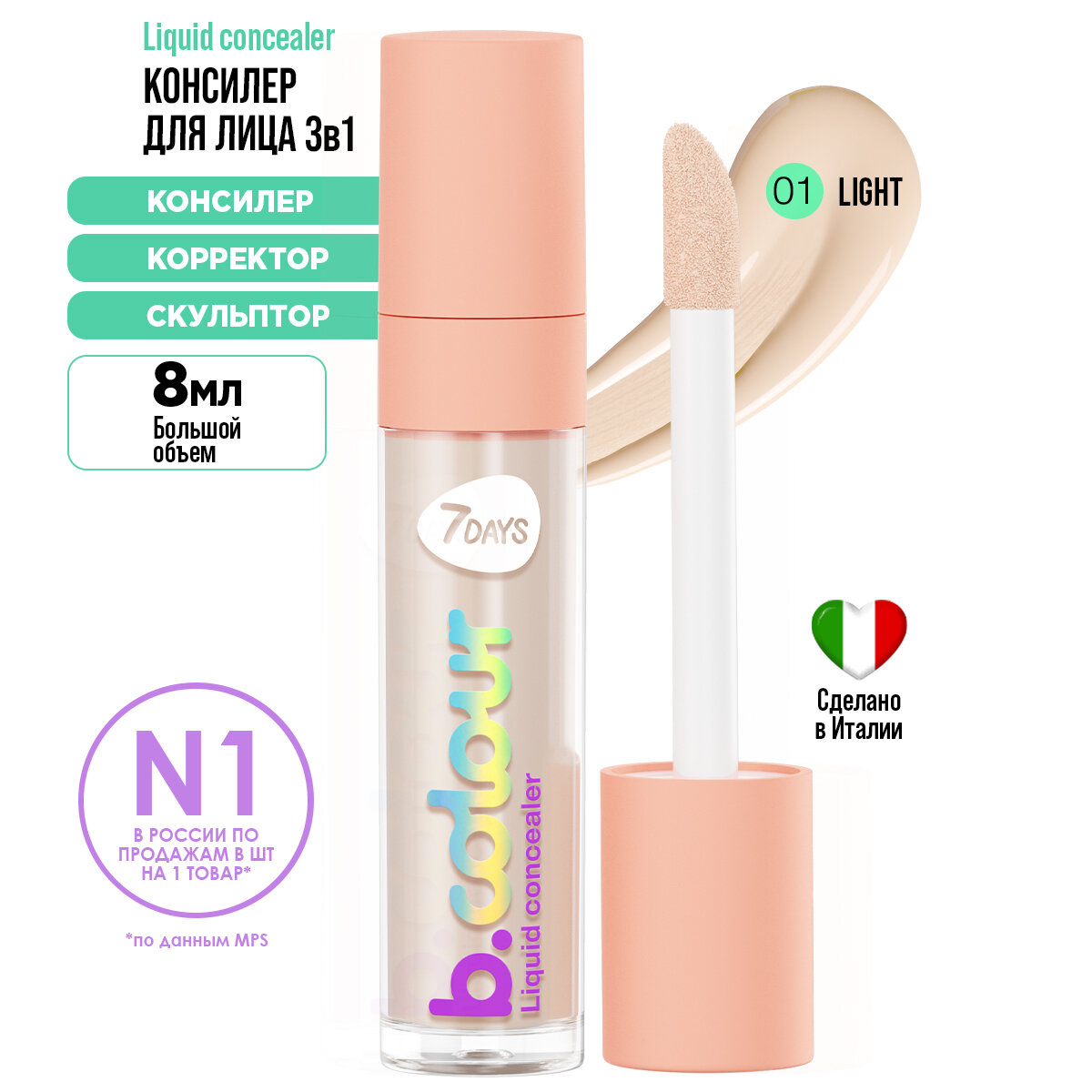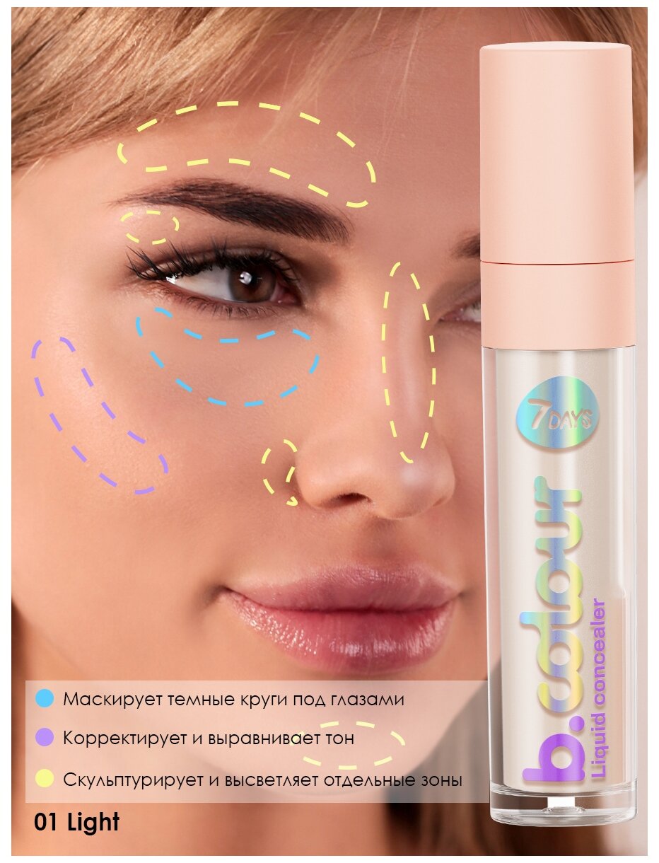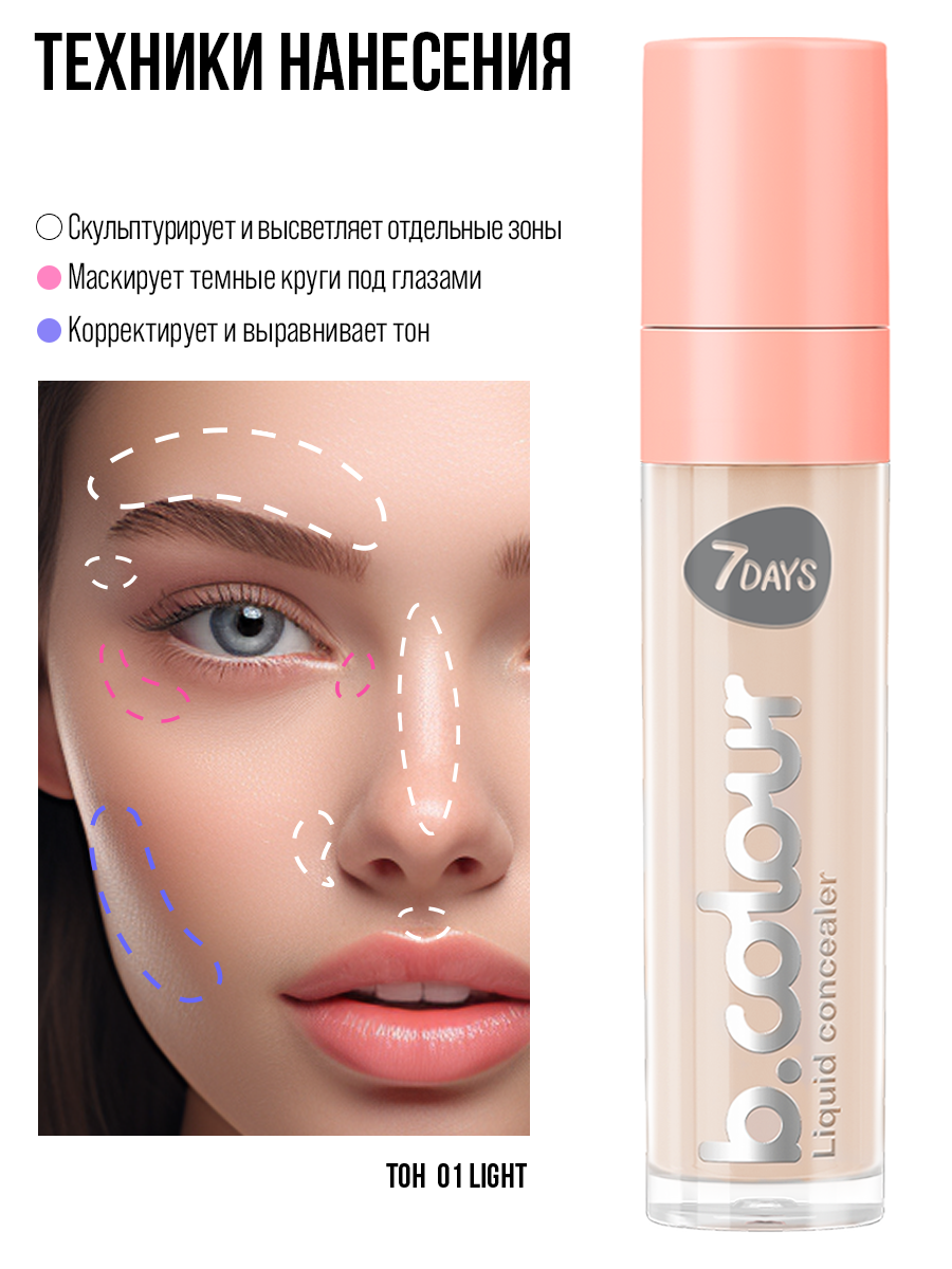 7DAYS Консилер для лица, корректор от темных кругов под глазами, натуральный, светлый B.COLOUR 01 LIGHT