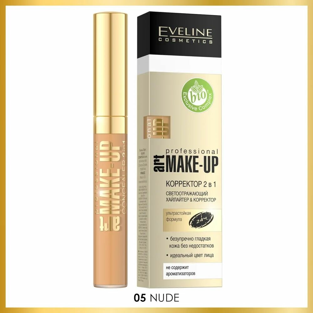 EVELINE Корректор 2в1 светоотражающий хайлайтер & корректор Art Professional Make-Up, 7 мл, 05 Nude
