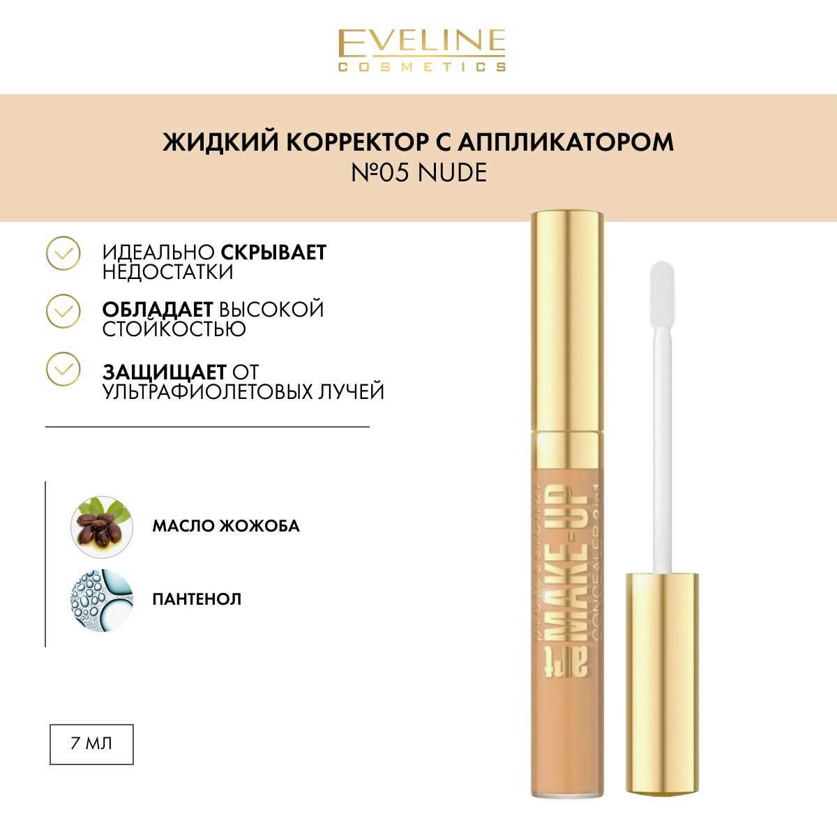 Купить EVELINE Жидкий корректор для лица 2в1 тон №05 NUDE, светоотражающий с аппликатором, 7 мл