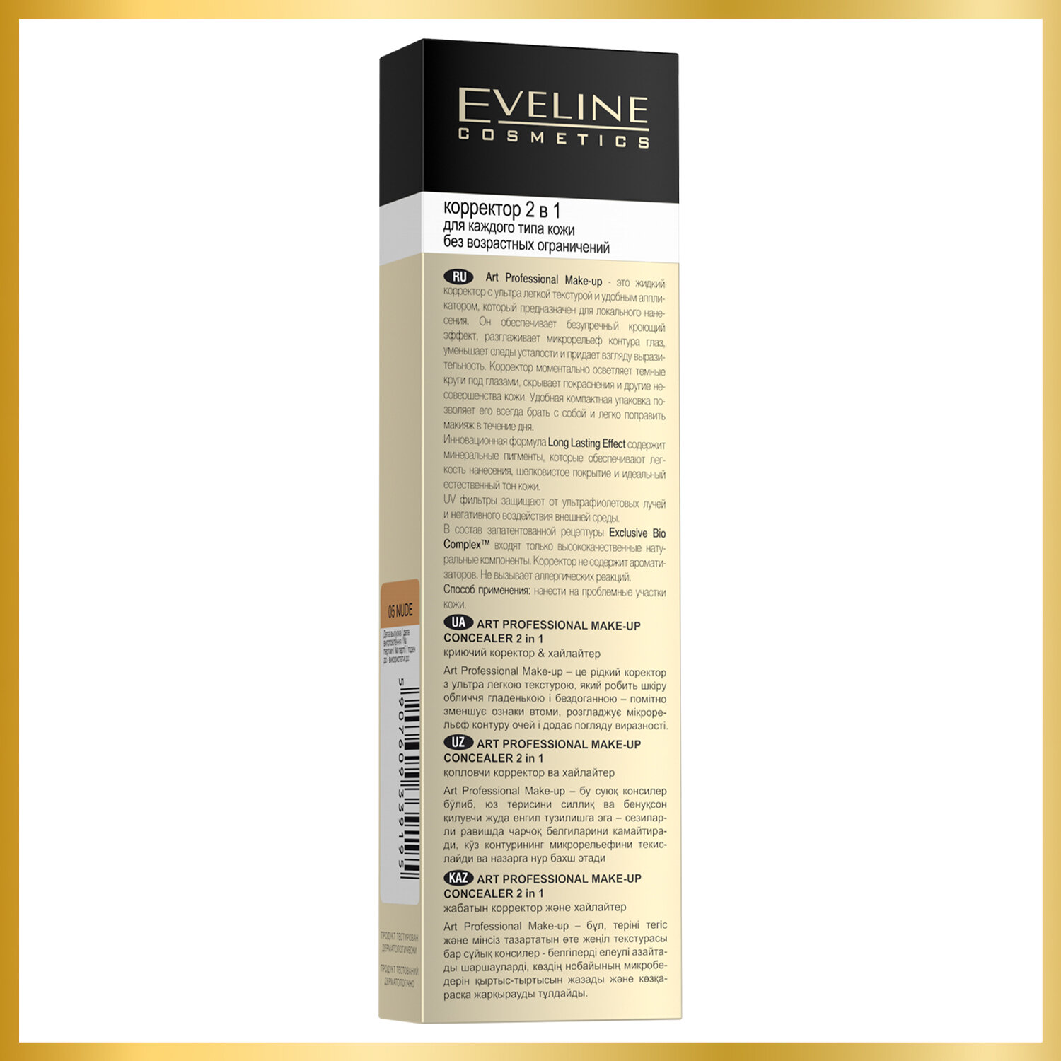 Корректор для лица EVELINE ART PROFESSIONAL MAKE-UP тон 05 (nude) 2 в 1 светоотражающий с кисточкой