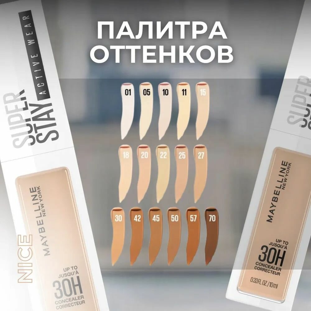 MAYBELLINE NEW YORK super stay active wear Стойкий консилер для лица, тон 10, 10 мл
