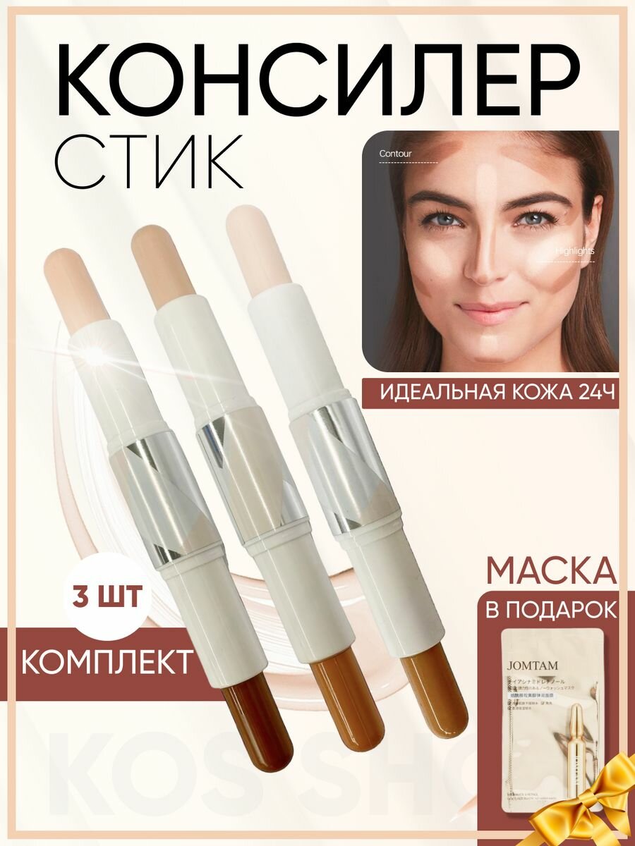 Двухсторонний стик - корректор консилер для лица 3в1 интересное: