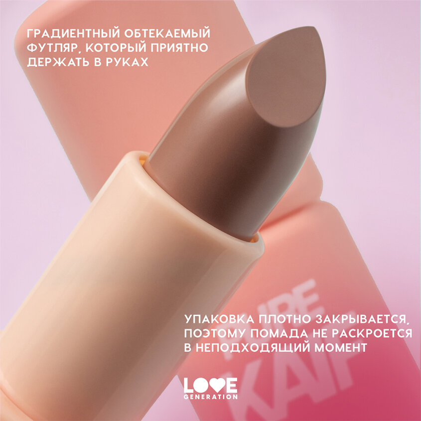 Помада в стике Love Generation Pure kaif кремовая высокопигментированная текстура, глянцевый финиш, тон 02, розово-бежевый, 4 г