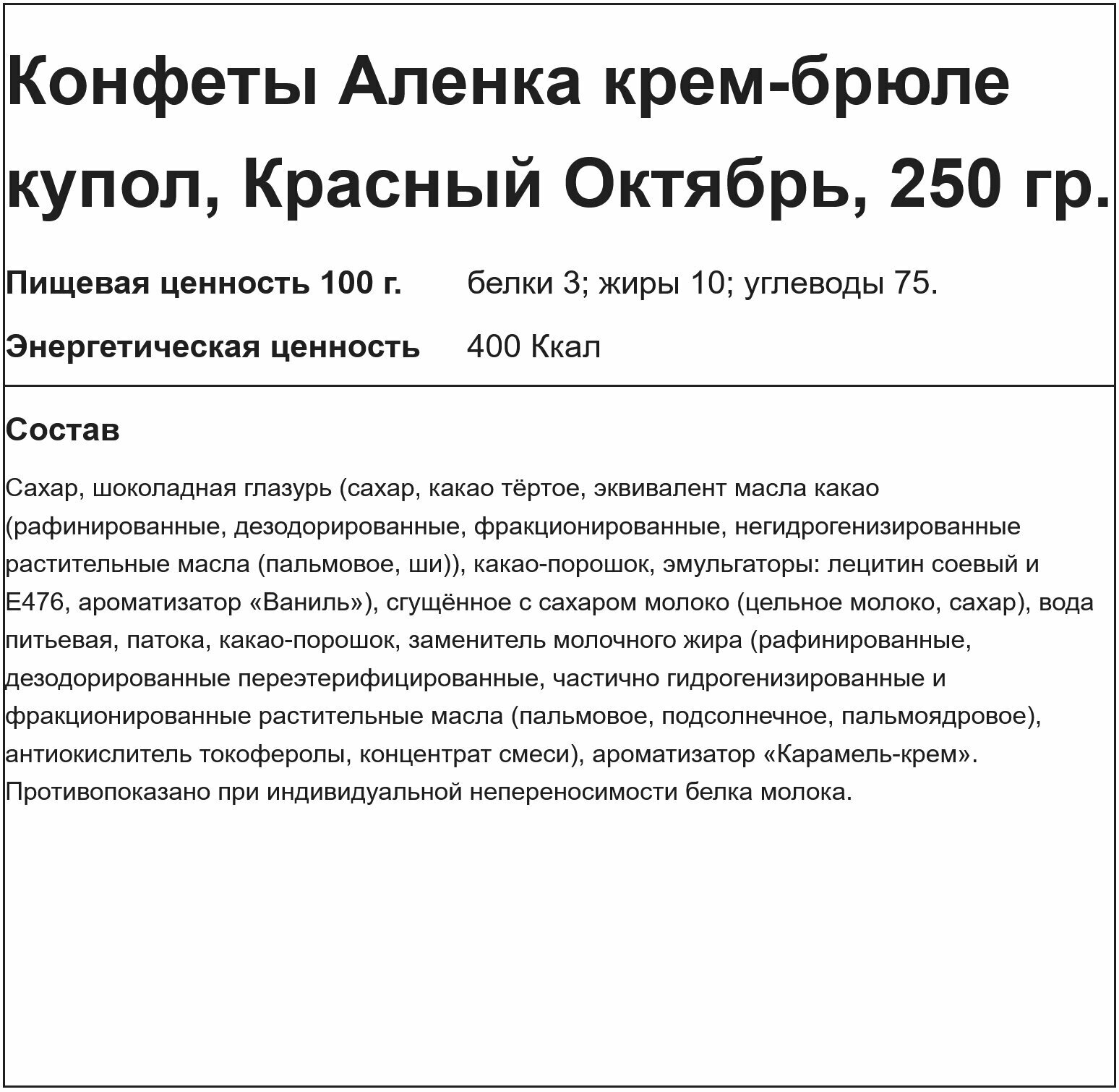 Конфеты Аленка крем-брюле купол, Красный Октябрь, 250 гр. интересное: