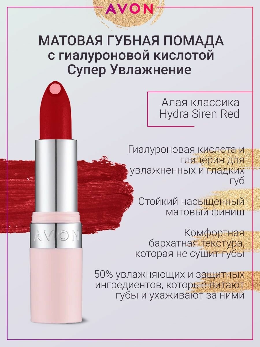 Матовая помада AVON Алая классика/Hydra Siren Red