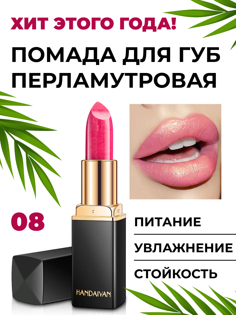 Помада для губ перламутровая увлажняющая, тон 08 интересное: