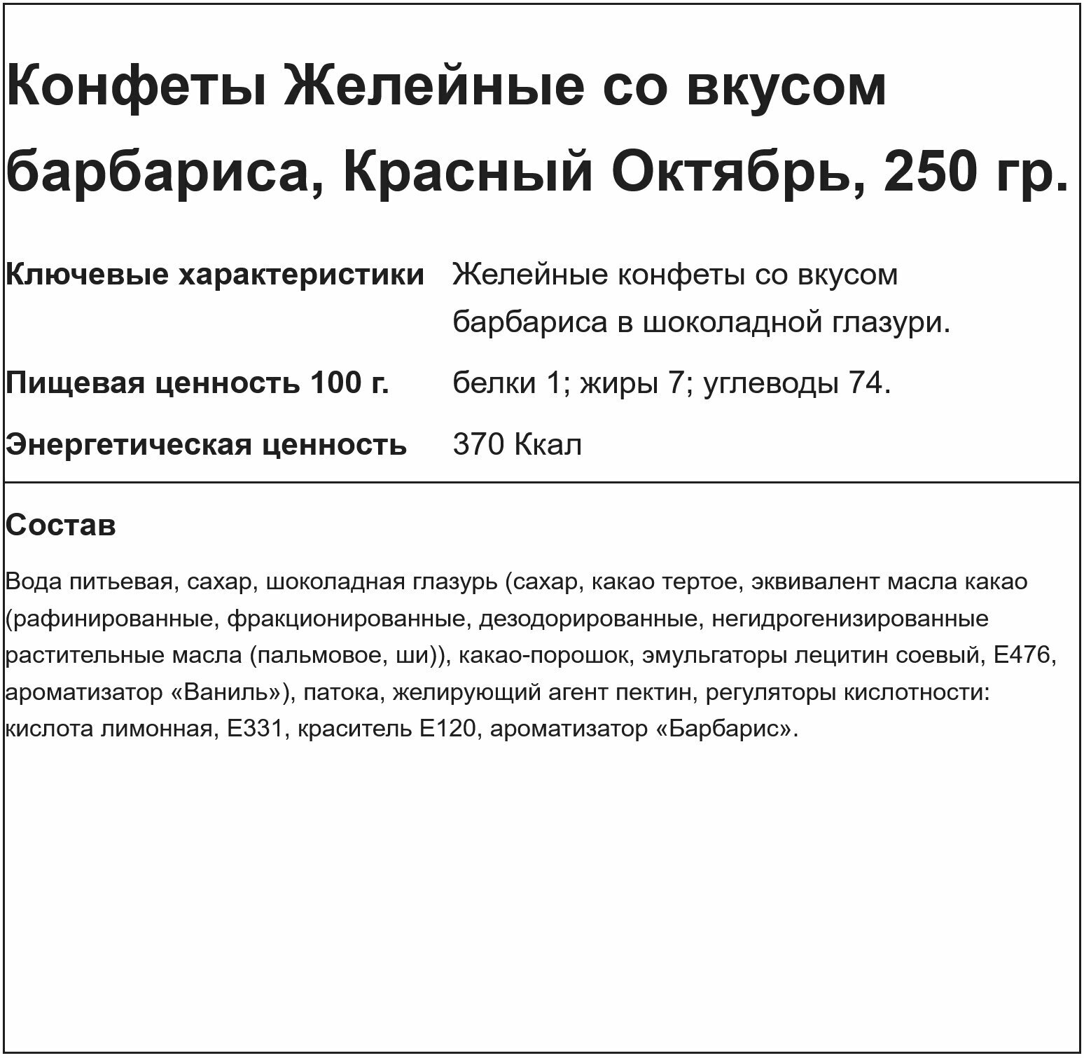 Конфеты Желейные со вкусом барбариса, Красный Октябрь, 250 гр. интересное: