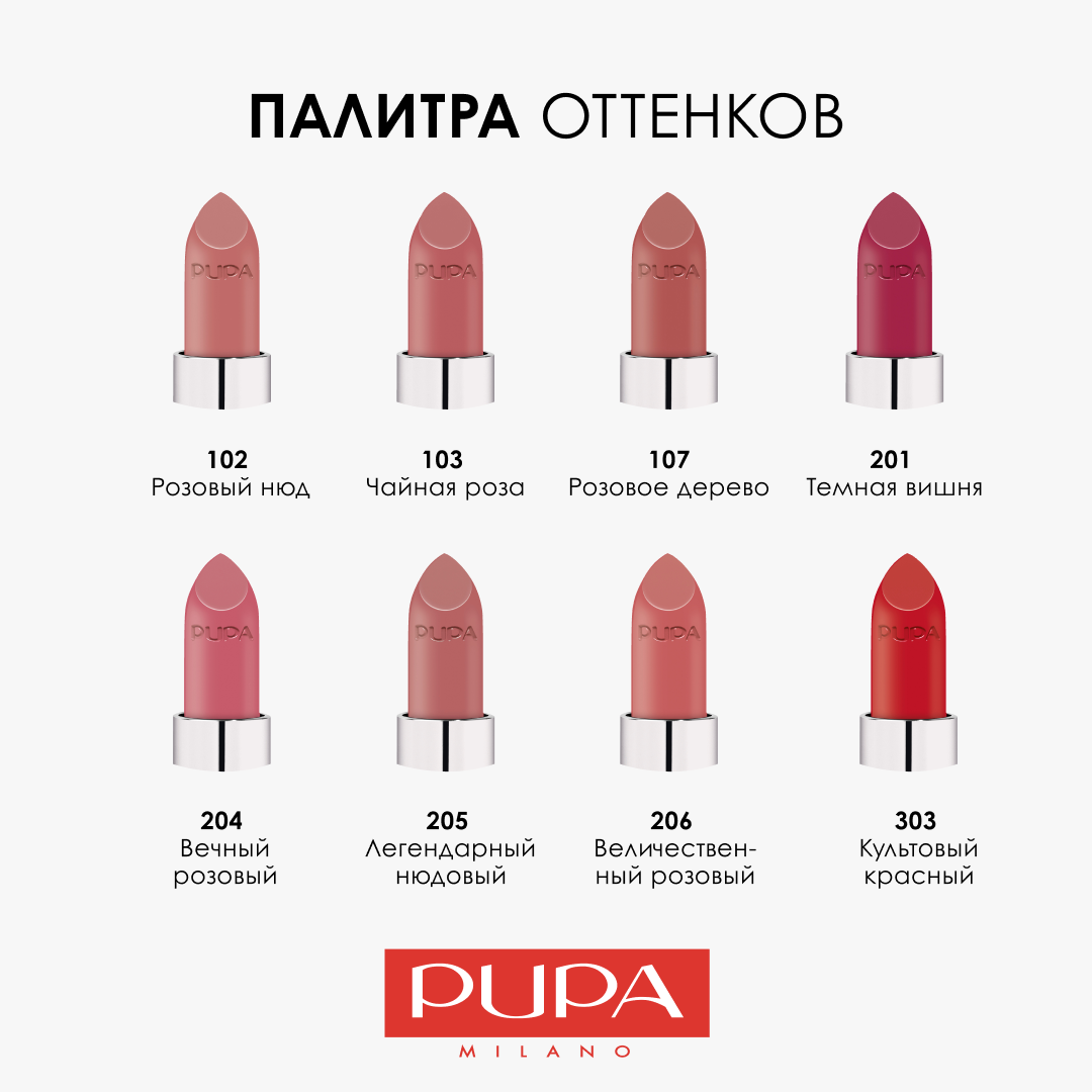 | Цвет товара | 102 Rose nude, 103 Tea rose, 107 Rosewood, 2, 201 Black cherry, 204 Timeless rose, 205 Iconic nude, 206 Toasted rose, 3, 303 Iconic red, фуксия |