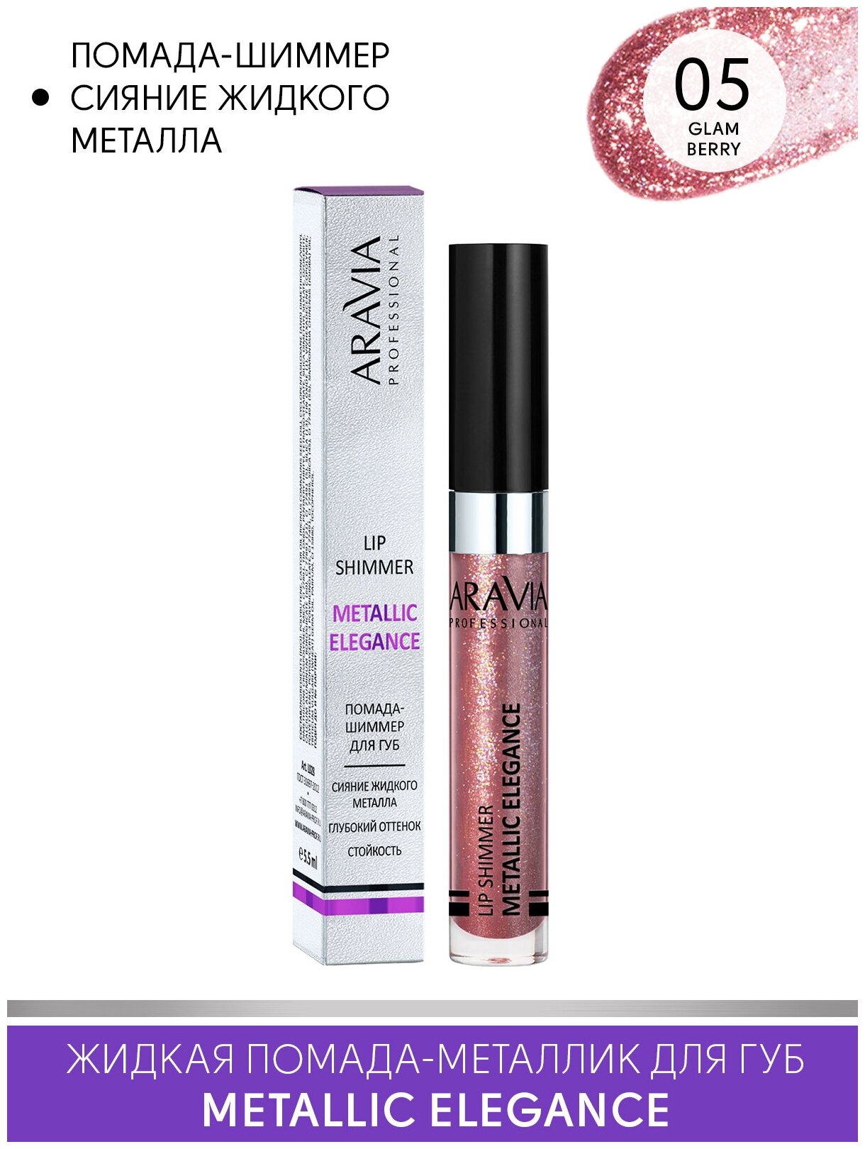 Купить ARAVIA Жидкая помада-металлик для губ METALLIC ELEGANCE, тон 05 lip shimmer, оттенок малиново-розовый