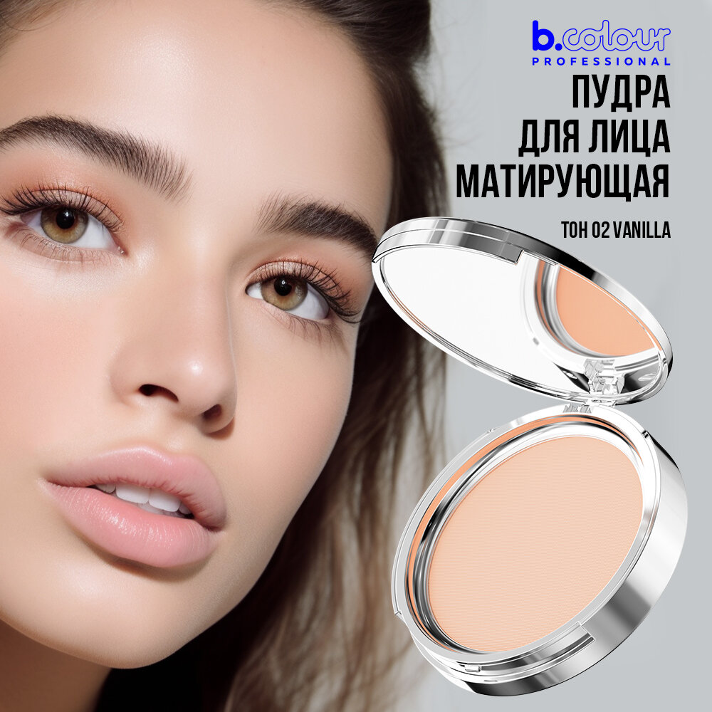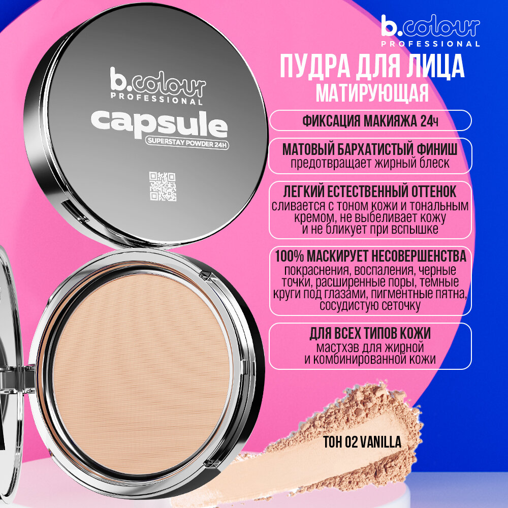 B.COLOUR PROFESSIONAL Пудра для лица матирующая компактная с зеркалом светлая CAPSULE, 02 VANILLA
